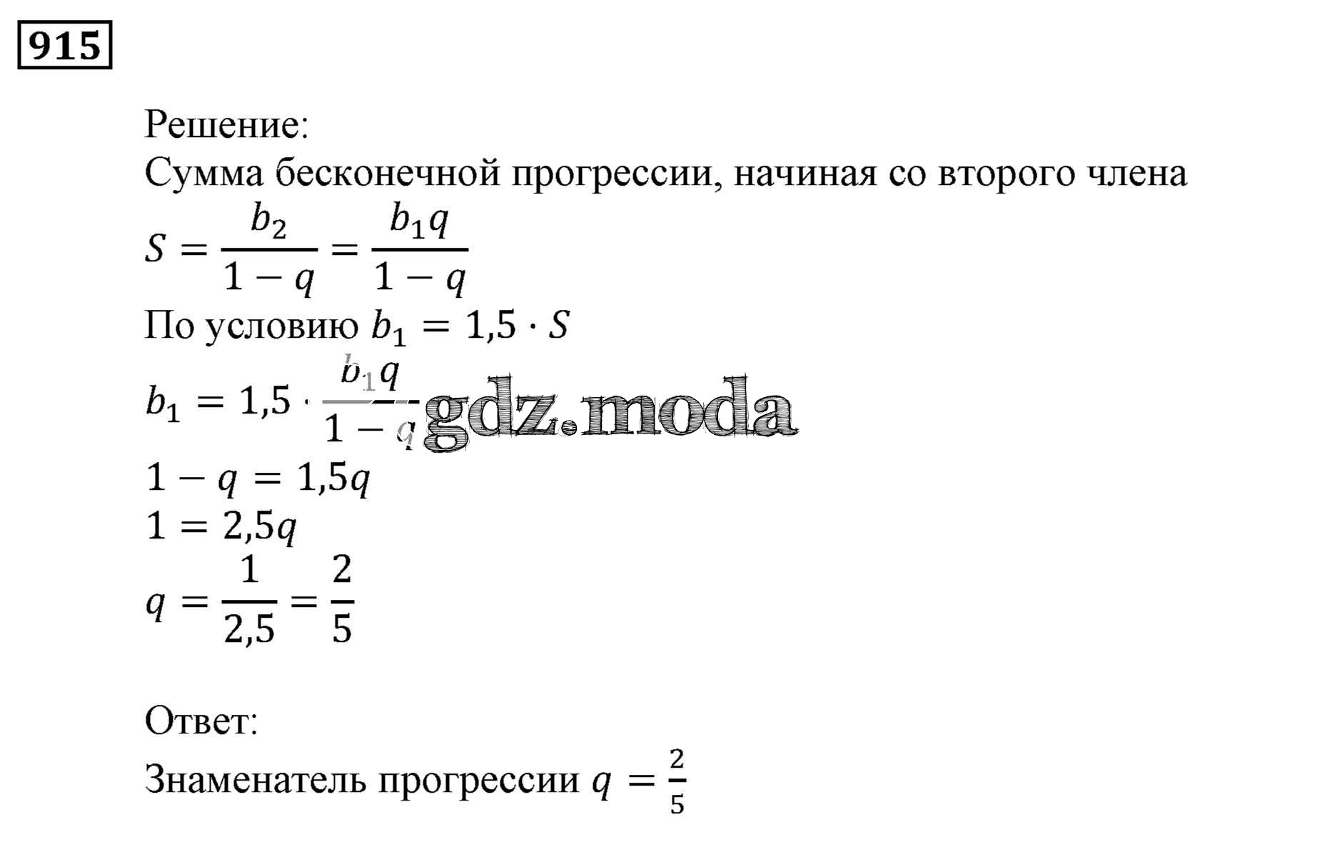 ОТВЕТ на задание № 915 Учебник по Алгебре 9 класс Мерзляк Алгоритм успеха