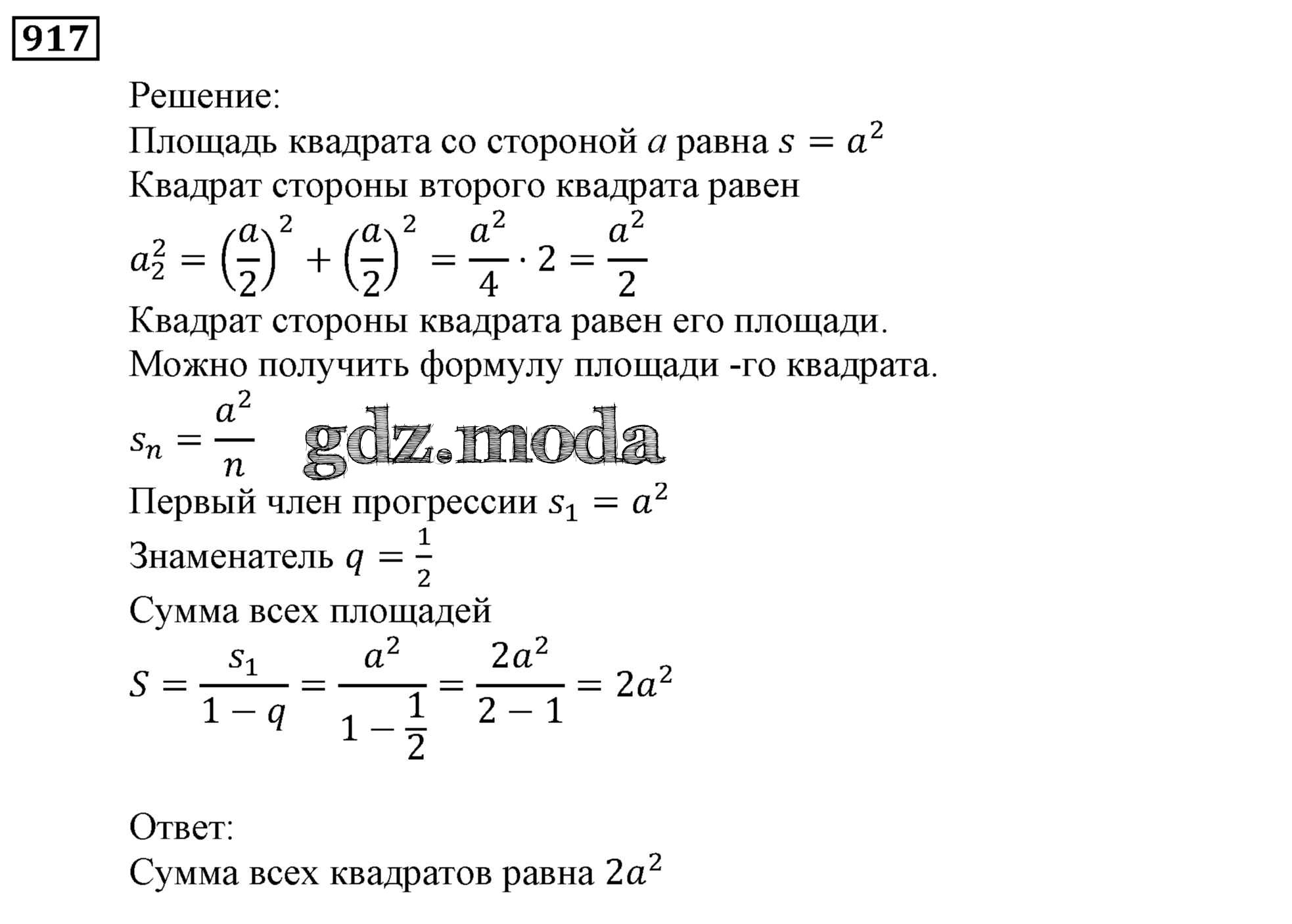 ОТВЕТ на задание № 917 Учебник по Алгебре 9 класс Мерзляк Алгоритм успеха