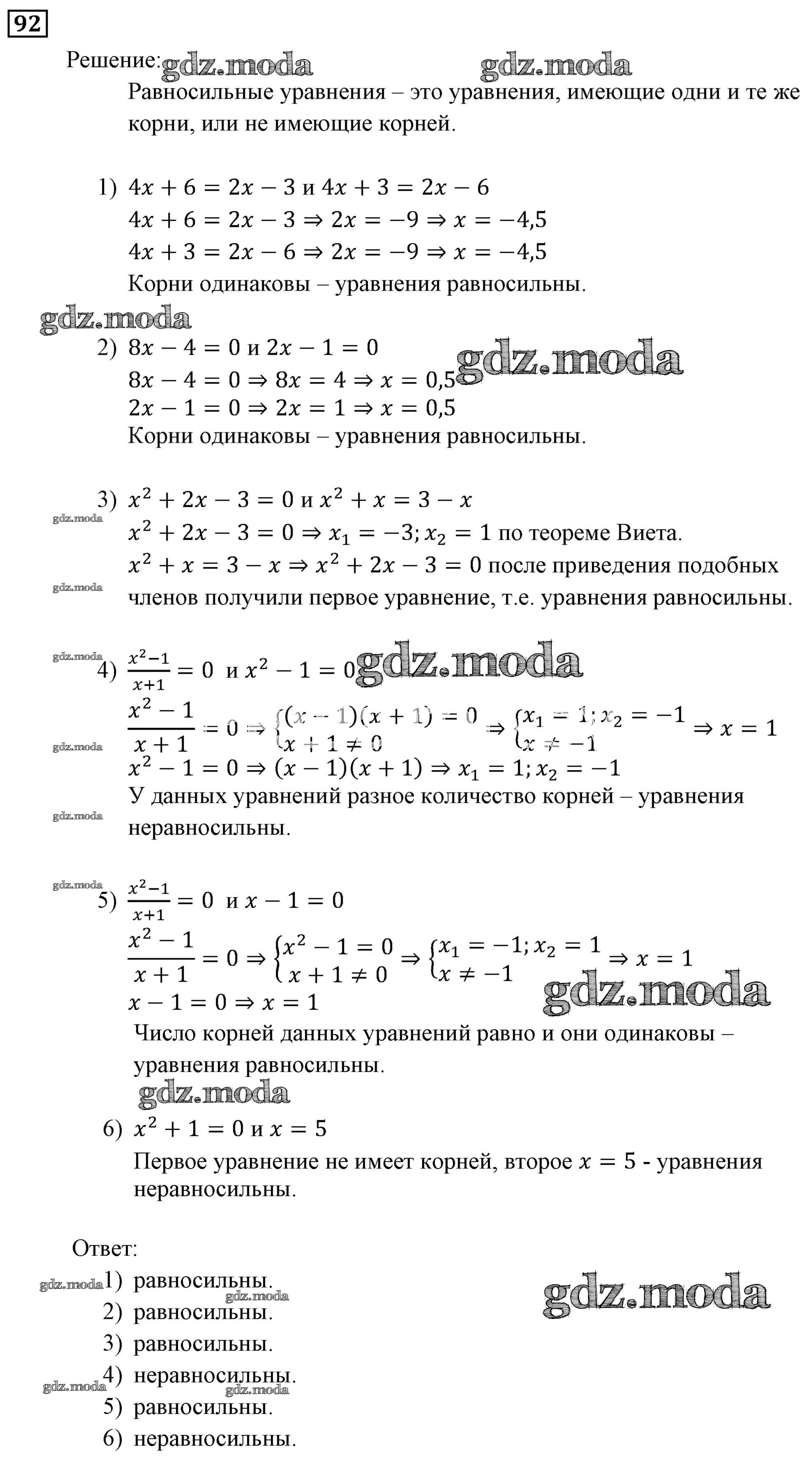 ОТВЕТ на задание № 92 Учебник по Алгебре 9 класс Мерзляк Алгоритм успеха