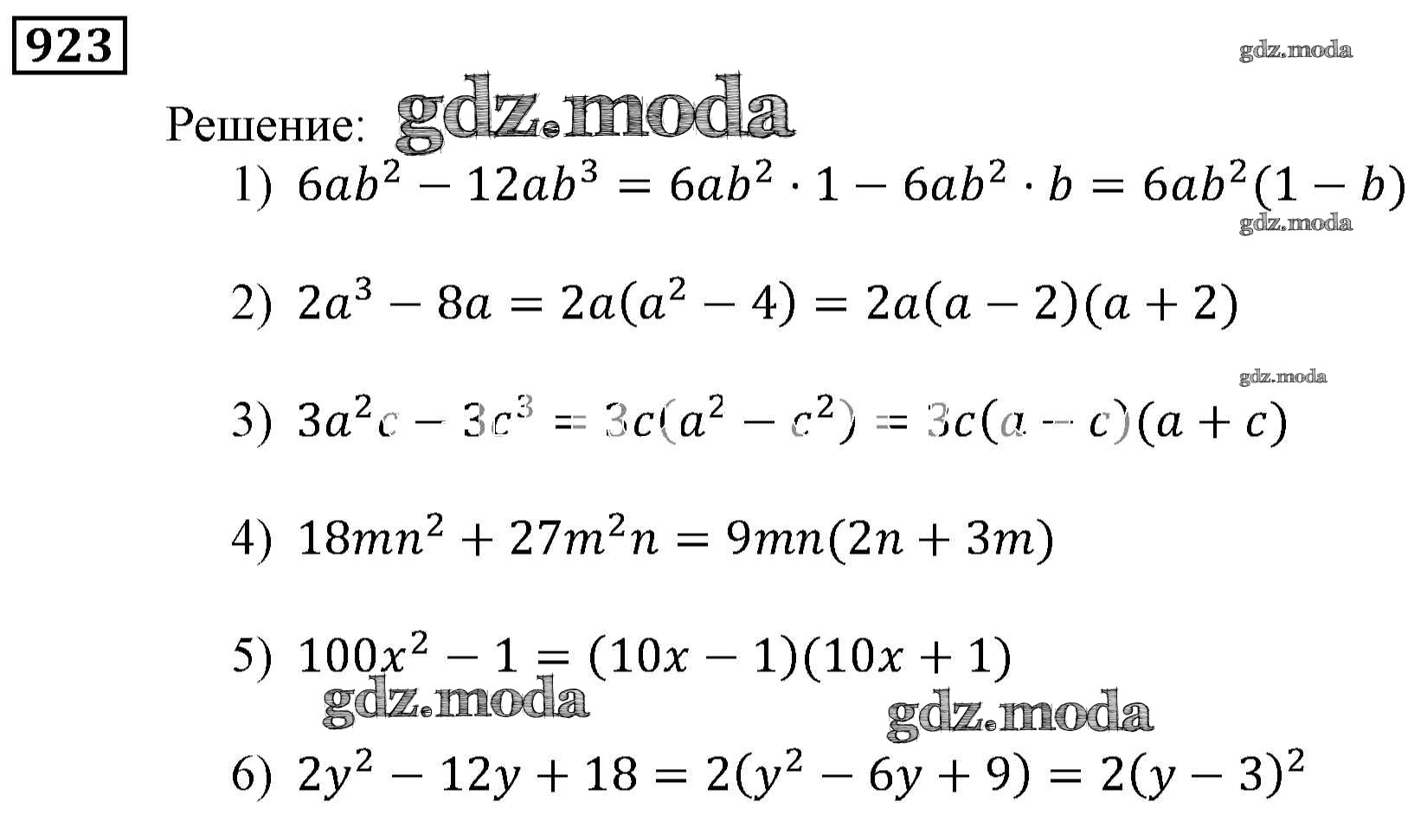 ОТВЕТ на задание № 923 Учебник по Алгебре 9 класс Мерзляк Алгоритм успеха