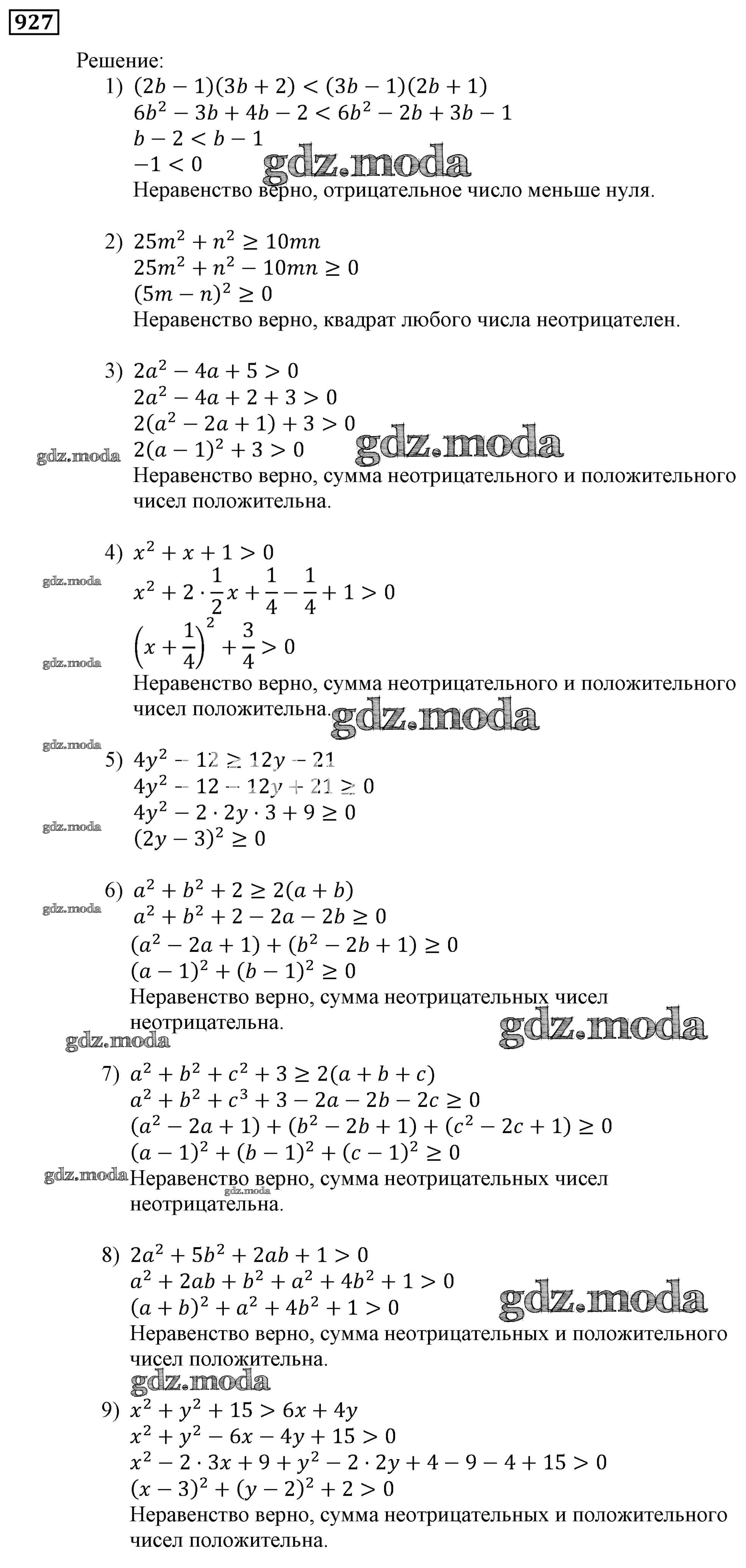 ОТВЕТ на задание № 927 Учебник по Алгебре 9 класс Мерзляк Алгоритм успеха