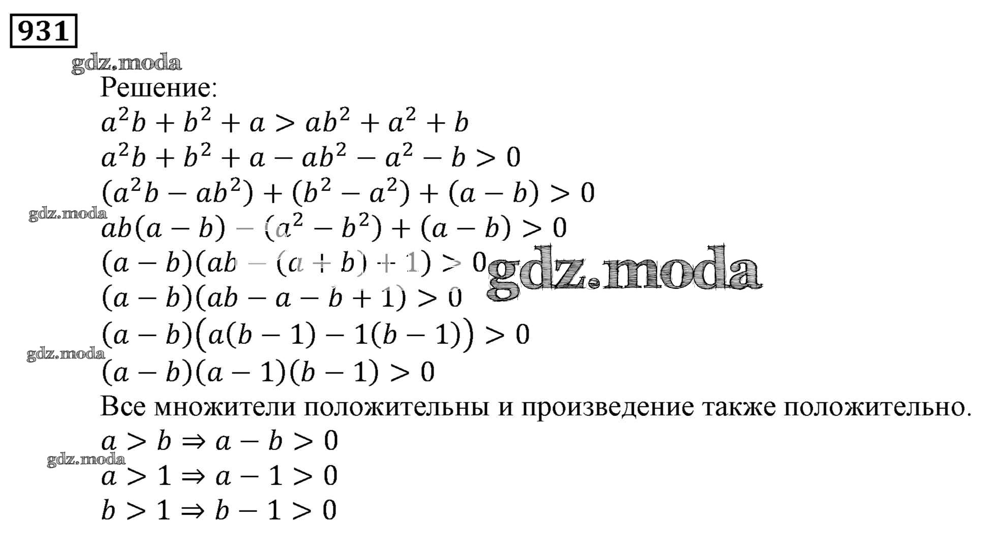 ОТВЕТ на задание № 931 Учебник по Алгебре 9 класс Мерзляк Алгоритм успеха