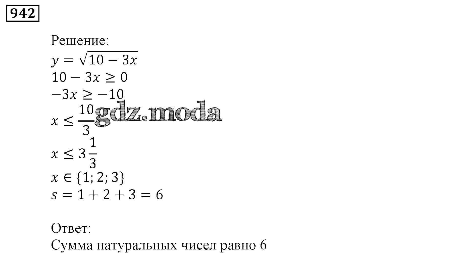 ОТВЕТ на задание № 942 Учебник по Алгебре 9 класс Мерзляк Алгоритм успеха