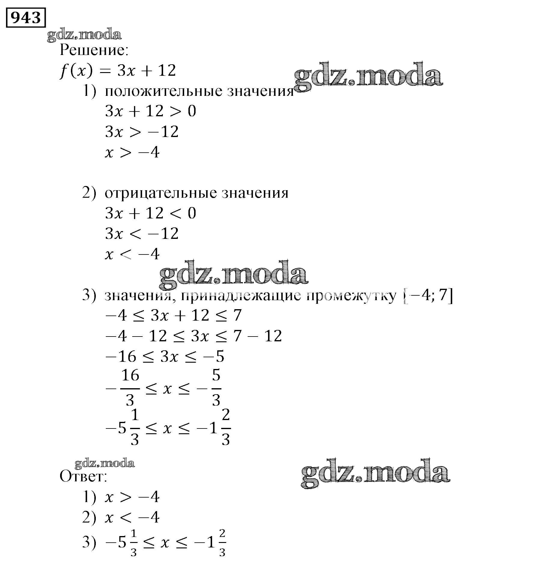 ОТВЕТ на задание № 943 Учебник по Алгебре 9 класс Мерзляк Алгоритм успеха