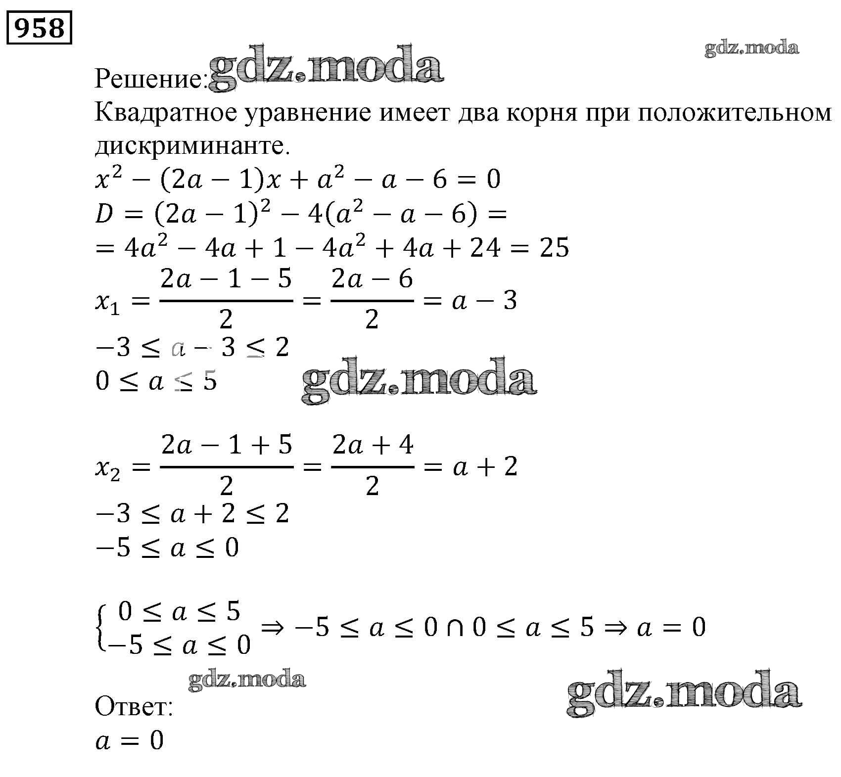 ОТВЕТ на задание № 958 Учебник по Алгебре 9 класс Мерзляк Алгоритм успеха