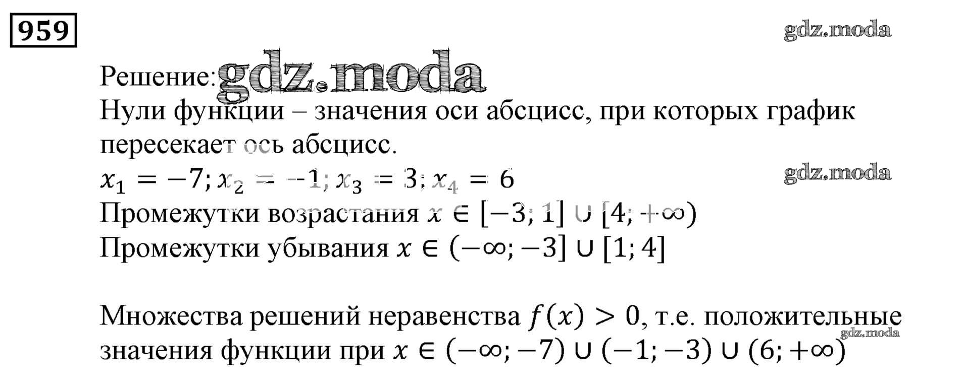 ОТВЕТ на задание № 959 Учебник по Алгебре 9 класс Мерзляк Алгоритм успеха