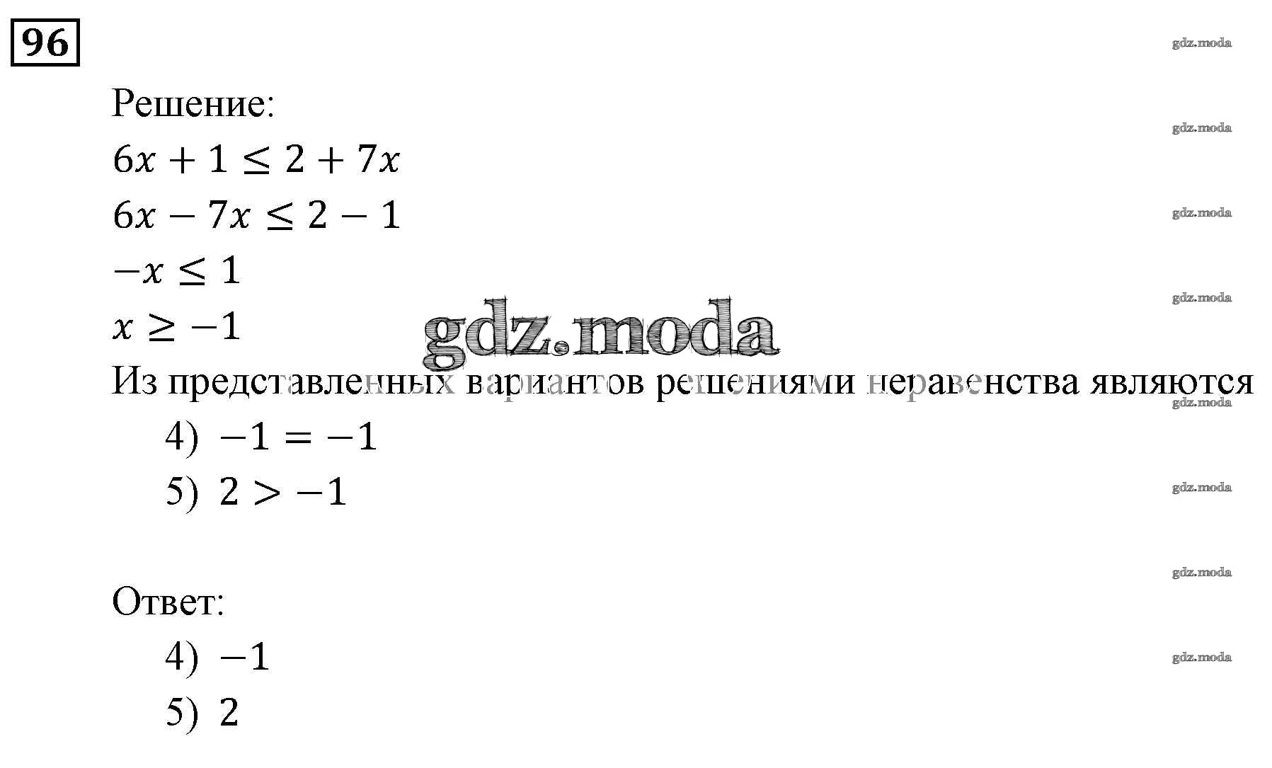 ОТВЕТ на задание № 96 Учебник по Алгебре 9 класс Мерзляк Алгоритм успеха