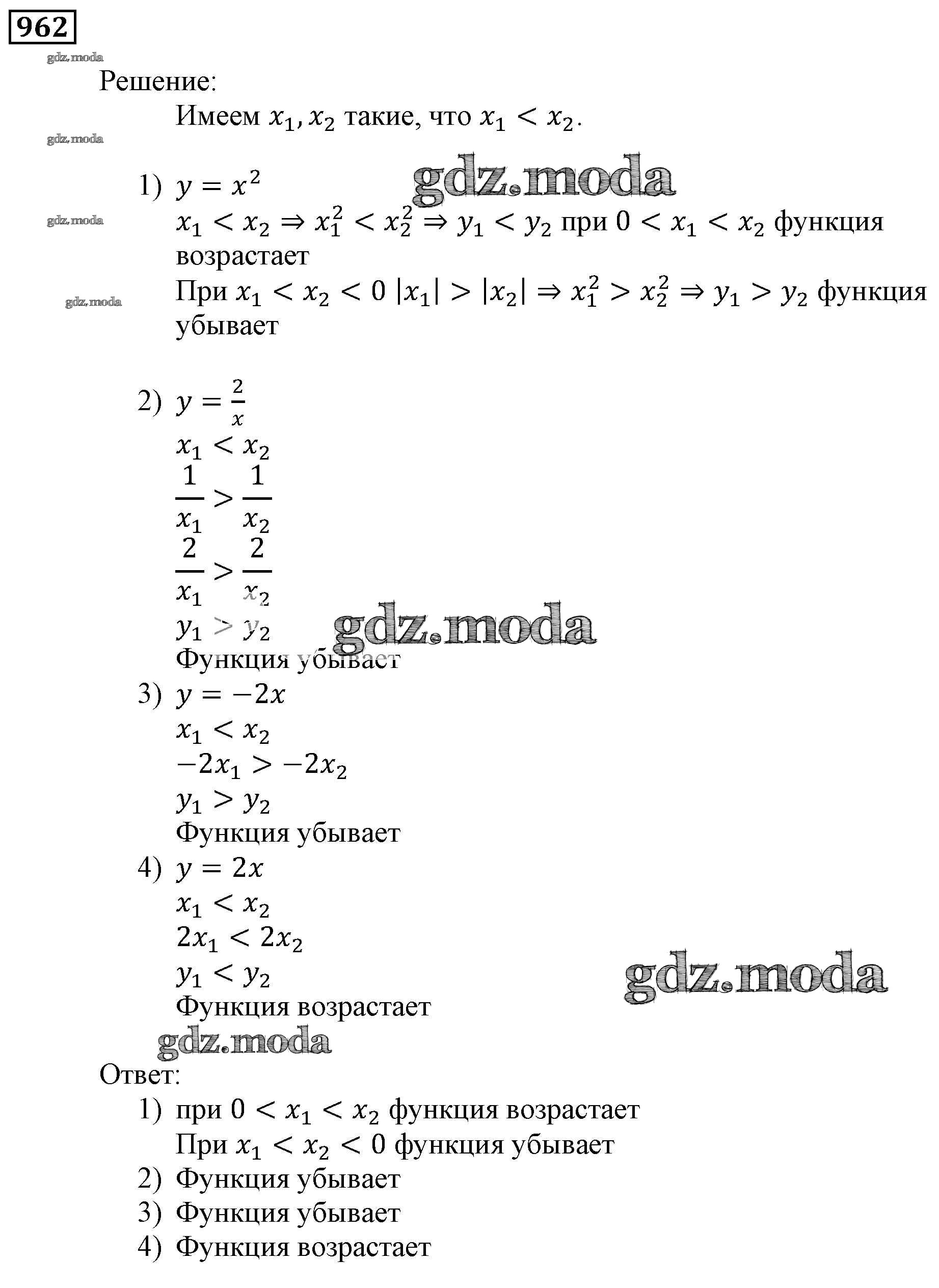 ОТВЕТ на задание № 962 Учебник по Алгебре 9 класс Мерзляк Алгоритм успеха