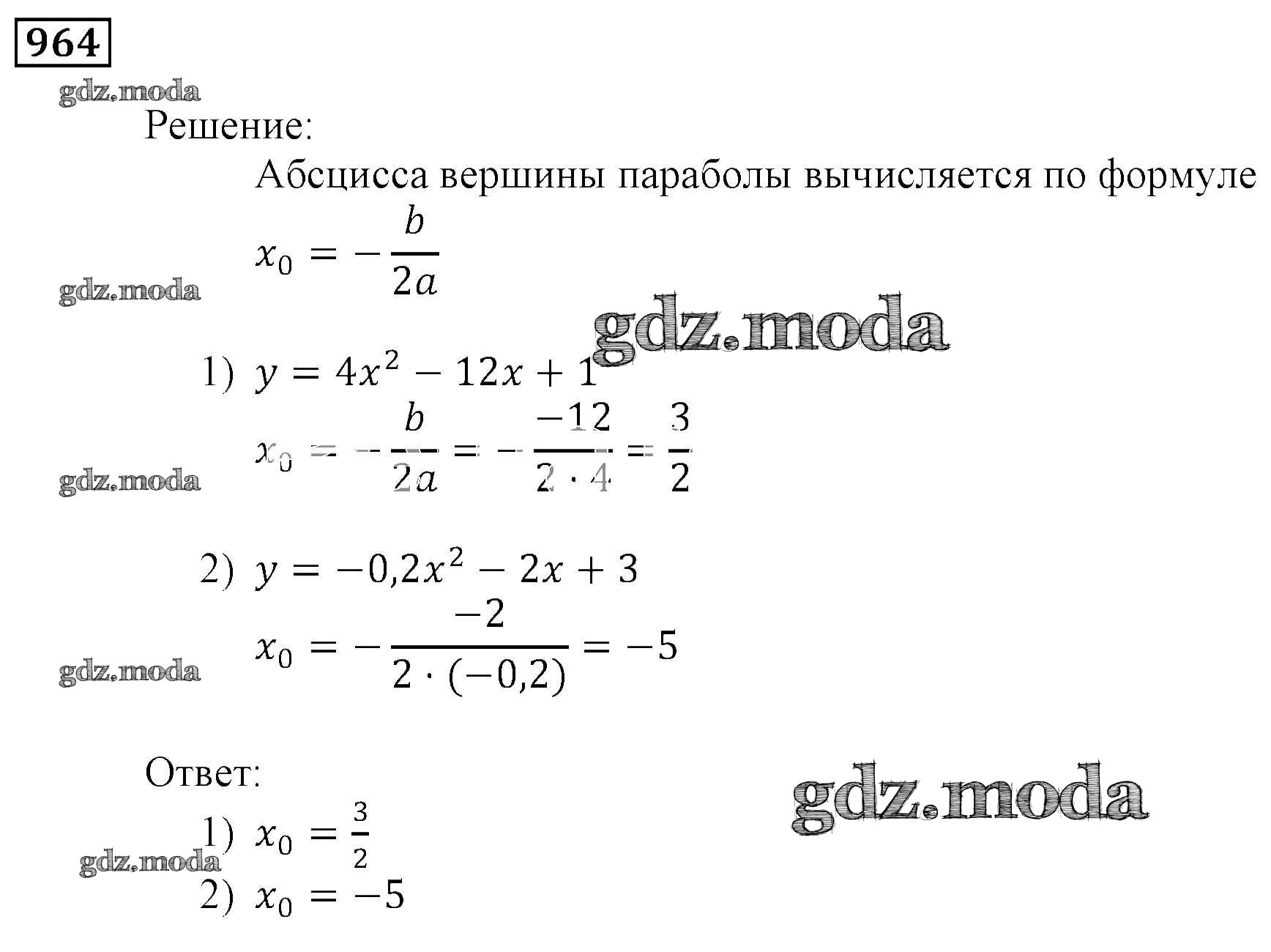 ОТВЕТ на задание № 964 Учебник по Алгебре 9 класс Мерзляк Алгоритм успеха