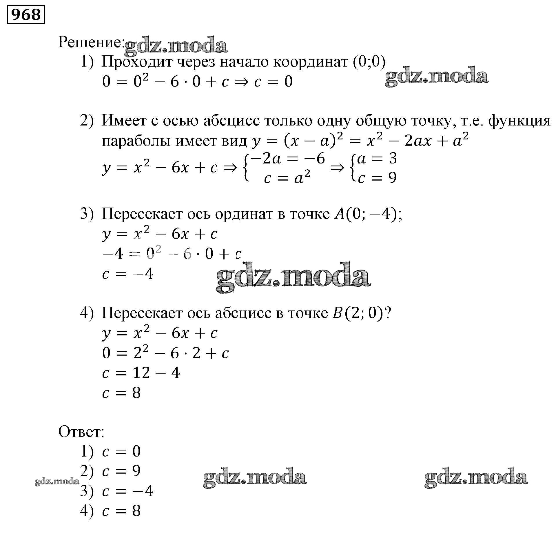 ОТВЕТ на задание № 968 Учебник по Алгебре 9 класс Мерзляк Алгоритм успеха