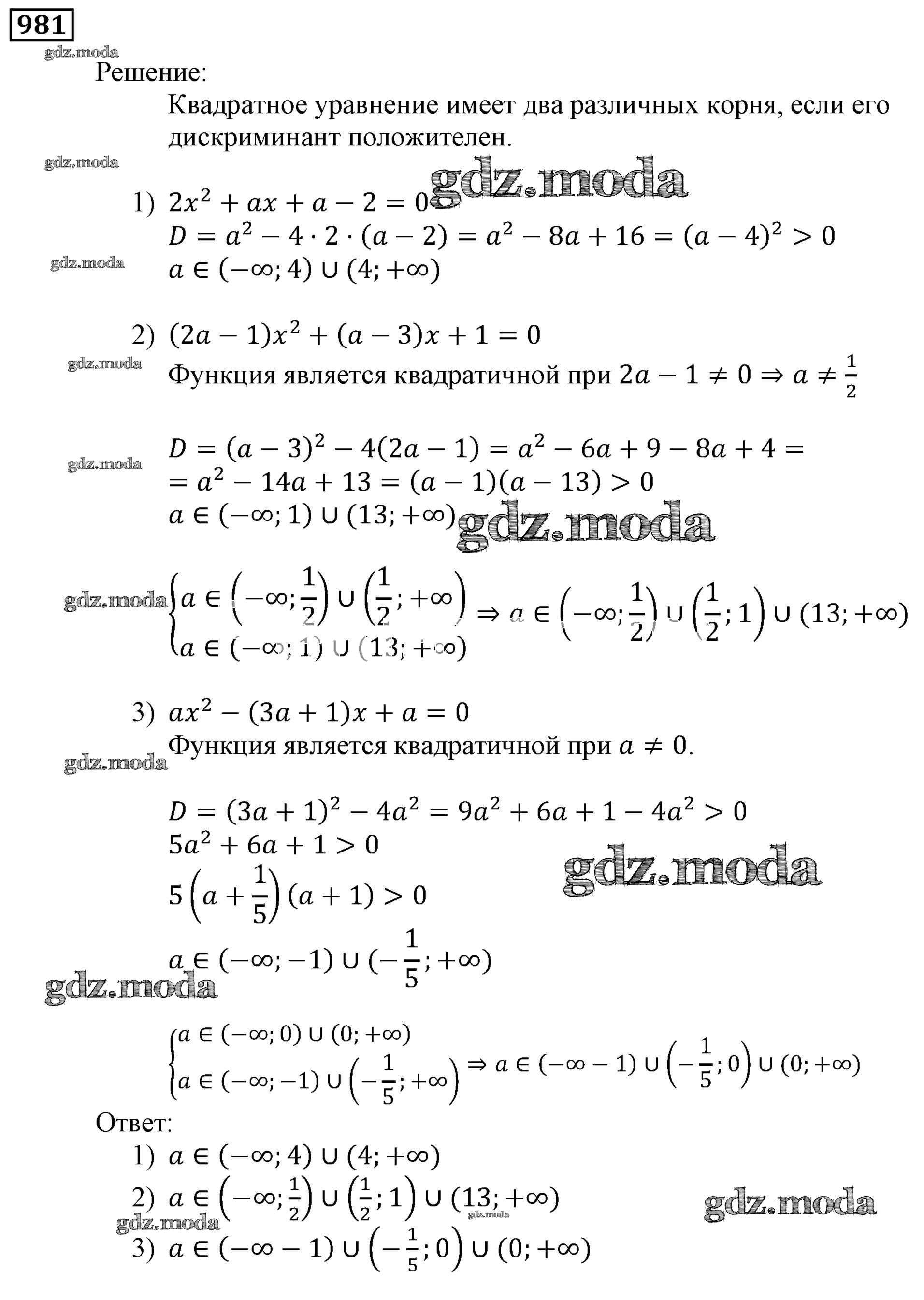 ОТВЕТ на задание № 981 Учебник по Алгебре 9 класс Мерзляк Алгоритм успеха