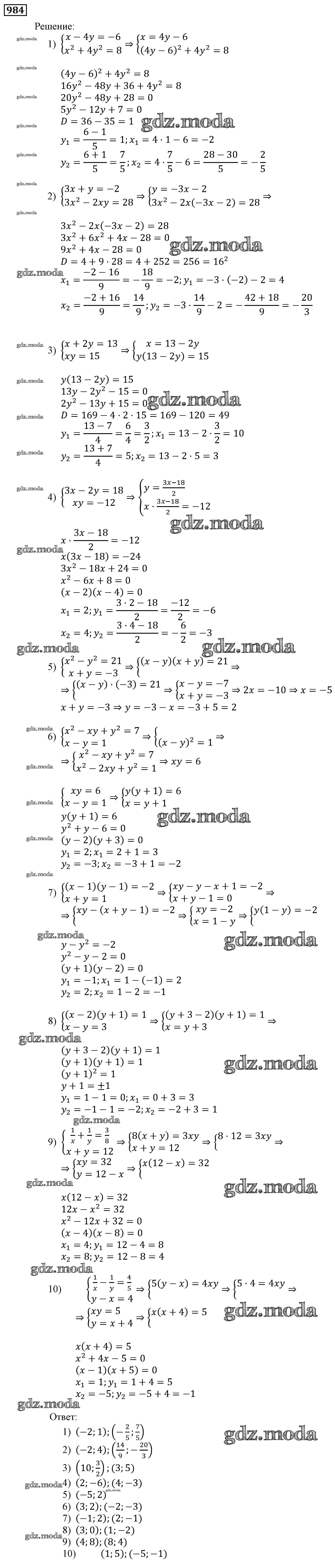 ОТВЕТ на задание № 984 Учебник по Алгебре 9 класс Мерзляк Алгоритм успеха