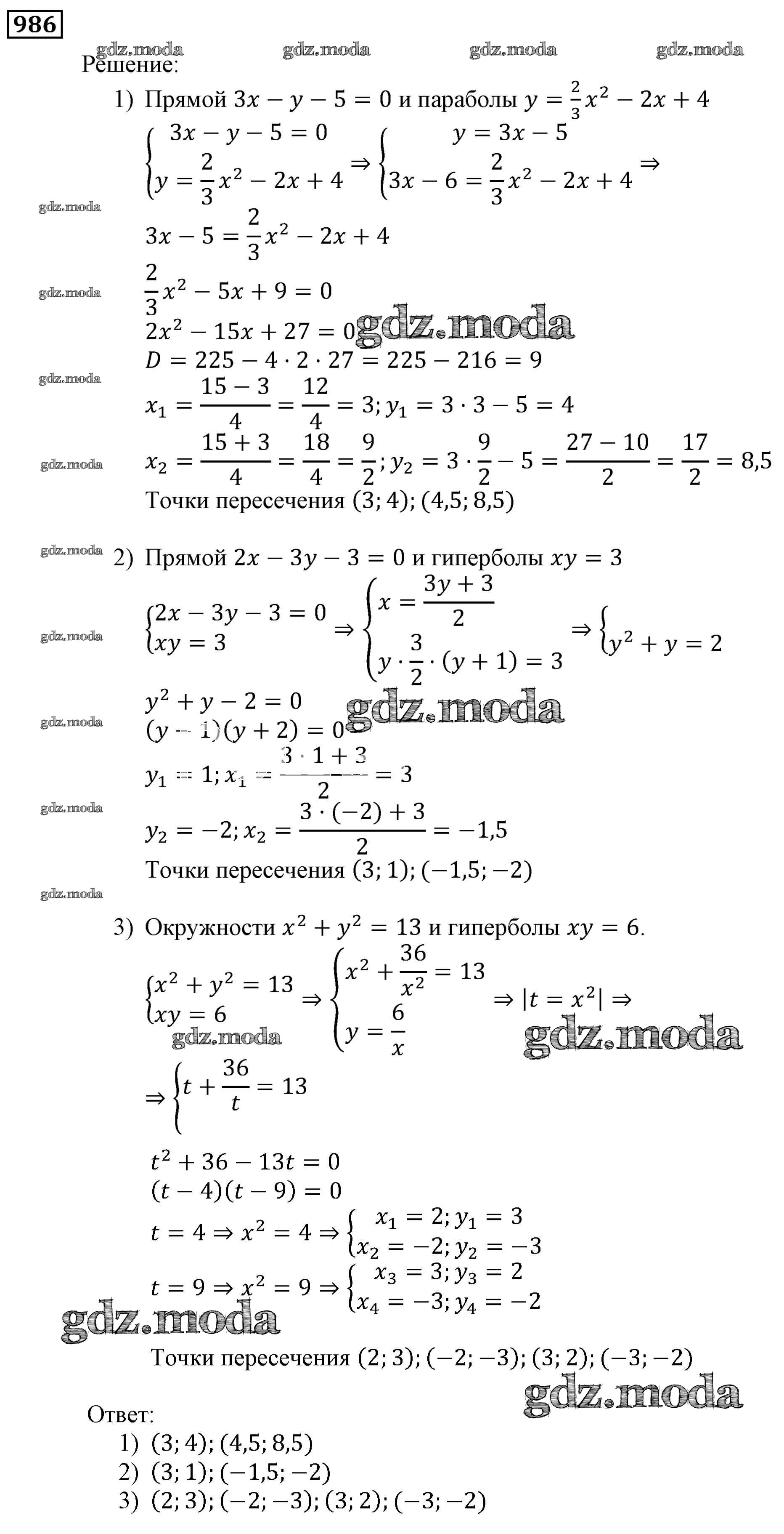 ОТВЕТ на задание № 986 Учебник по Алгебре 9 класс Мерзляк Алгоритм успеха
