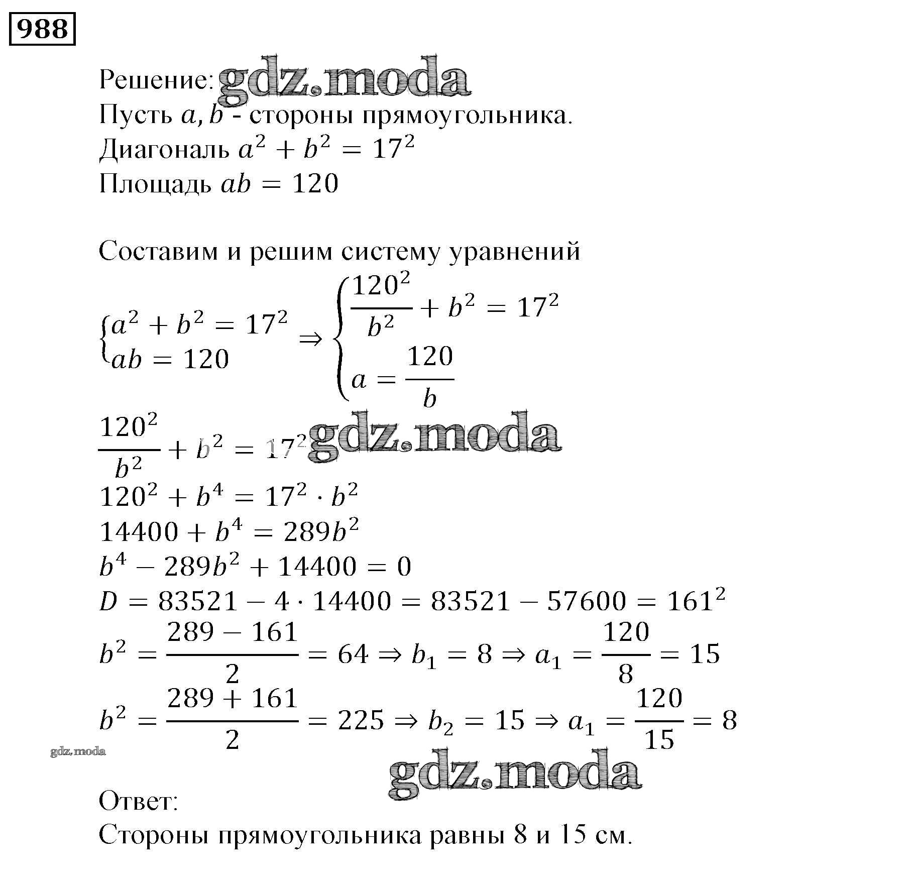 ОТВЕТ на задание № 988 Учебник по Алгебре 9 класс Мерзляк Алгоритм успеха