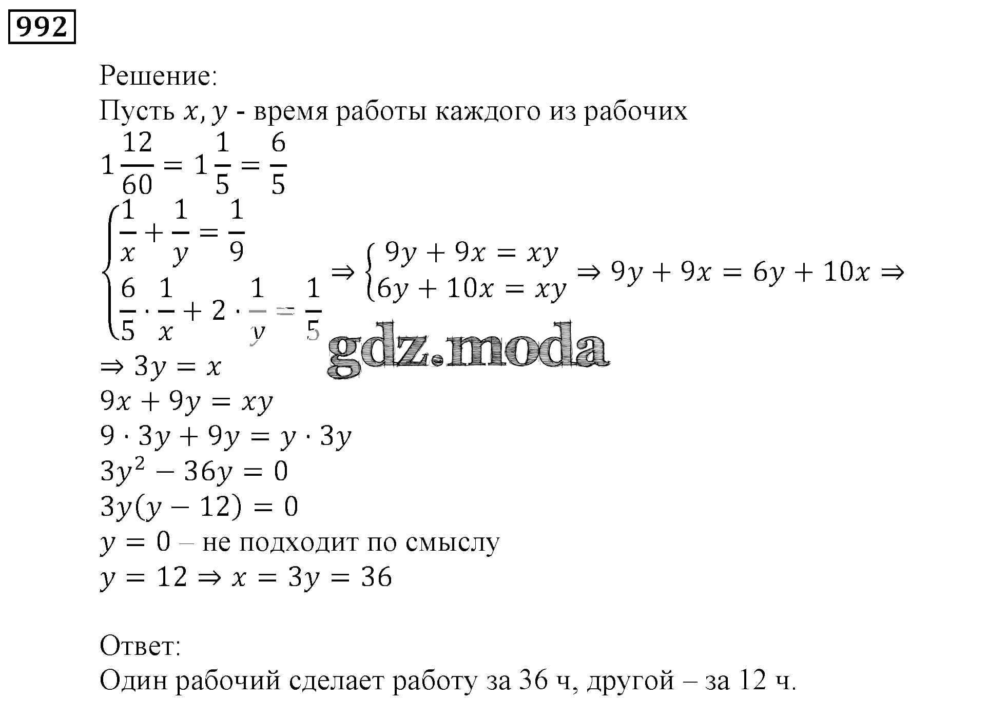 ОТВЕТ на задание № 992 Учебник по Алгебре 9 класс Мерзляк Алгоритм успеха