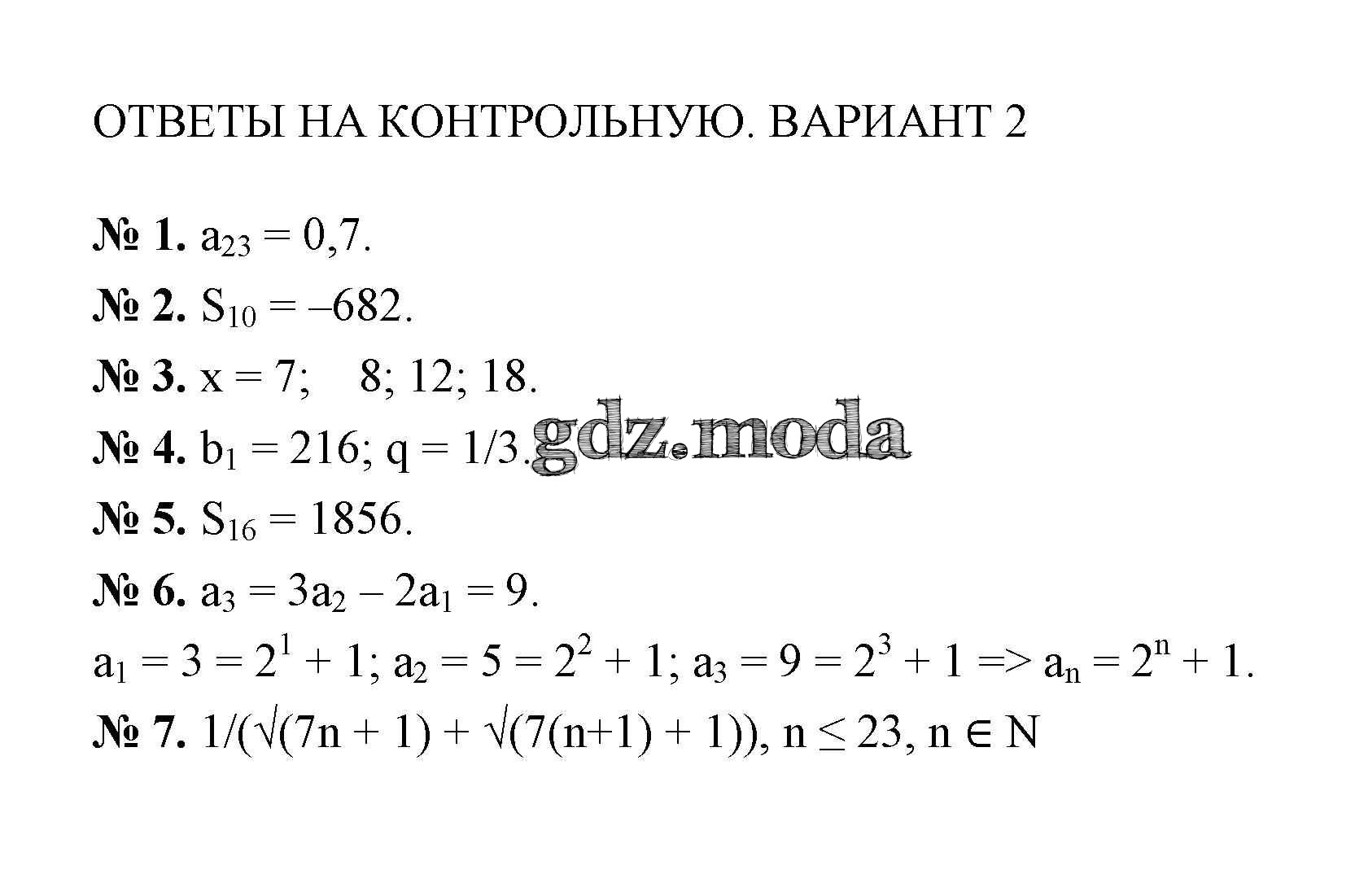 ОТВЕТ на задание № 2 Самостоятельные и контрольные работы по Алгебре 9 класс Мерзляк Алгоритм успеха