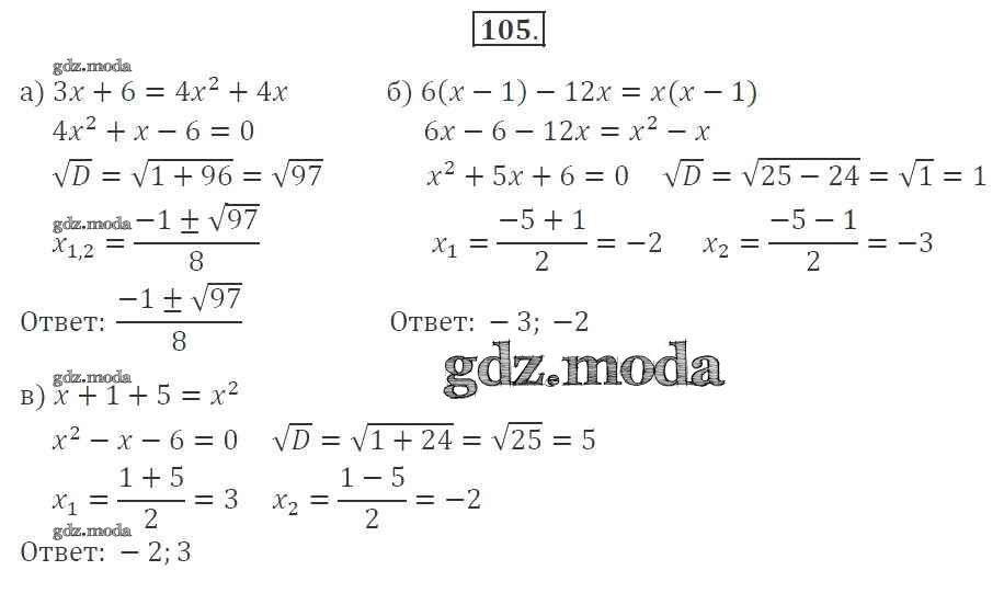 ГДЗ решение к заданию № 105 Алгебра 9 класс рабочая тетрадь Минаева С.С. Просвещение 2017 Часть 1, Часть 2 бесплатно на гдз.мода!