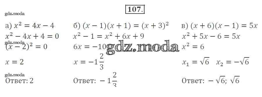 ГДЗ решение к заданию № 107 Алгебра 9 класс рабочая тетрадь Минаева С.С. Просвещение 2017 Часть 1, Часть 2 бесплатно на гдз.мода!