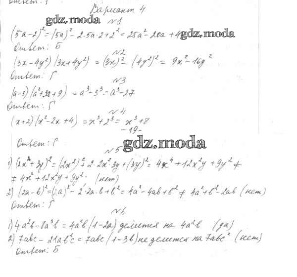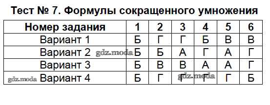 ГДЗ решение к заданию № Тест 7 Алгебра 7-9 класс тесты Мордкович А.Г. Мнемозина 2013 Базовый уровень ФГОС бесплатно на гдз.мода!