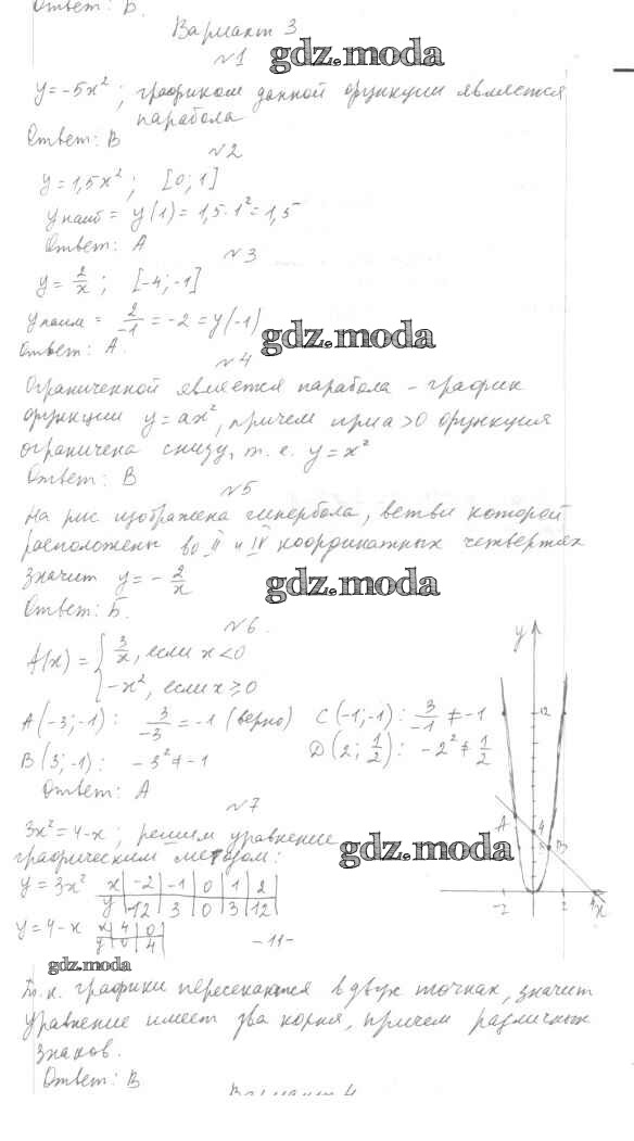 ОТВЕТ на задание № Тест 3 Тесты по Алгебре 7-9 класс Мордкович Базовый уровень
