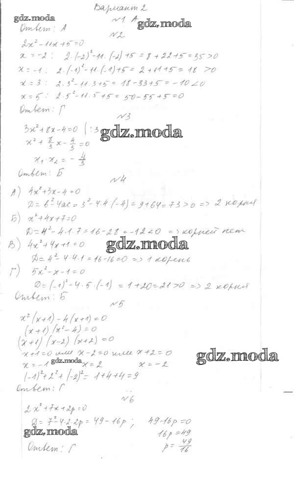 ГДЗ решение к заданию № Тест 5 Алгебра 7-9 класс тесты Мордкович А.Г. Мнемозина 2013 Базовый уровень ФГОС бесплатно на гдз.мода!