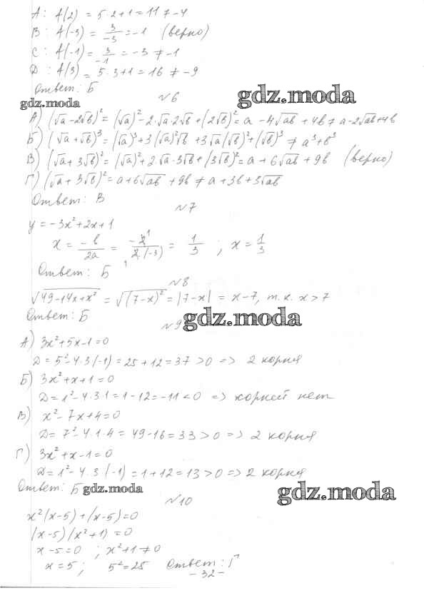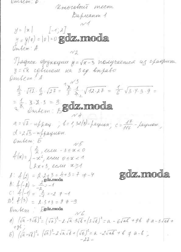 ГДЗ решение к заданию № Итоговый тест Алгебра 7-9 класс тесты Мордкович А.Г. Мнемозина 2013 Базовый уровень ФГОС бесплатно на гдз.мода!