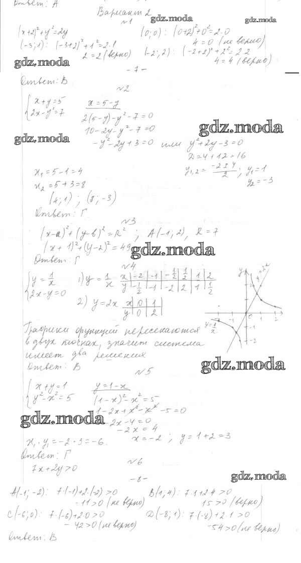 ОТВЕТ на задание № Тест 2 Тесты по Алгебре 7-9 класс Мордкович Базовый уровень