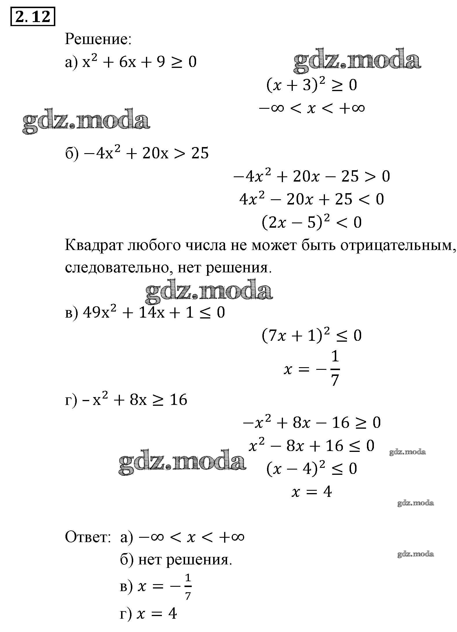 ОТВЕТ на задание № 12 Задачник по Алгебре 9 класс Мордкович