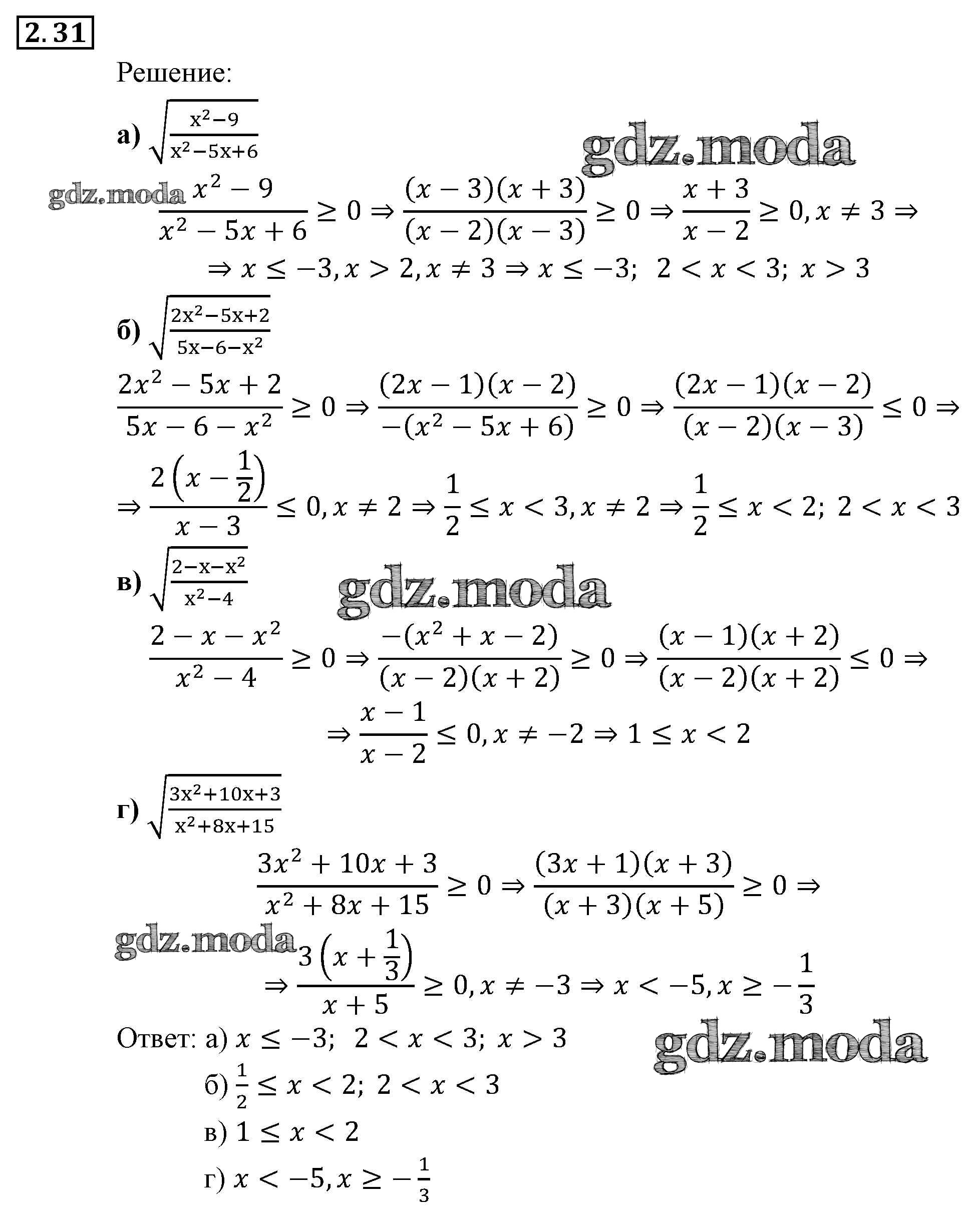 ОТВЕТ на задание № 31 Задачник по Алгебре 9 класс Мордкович