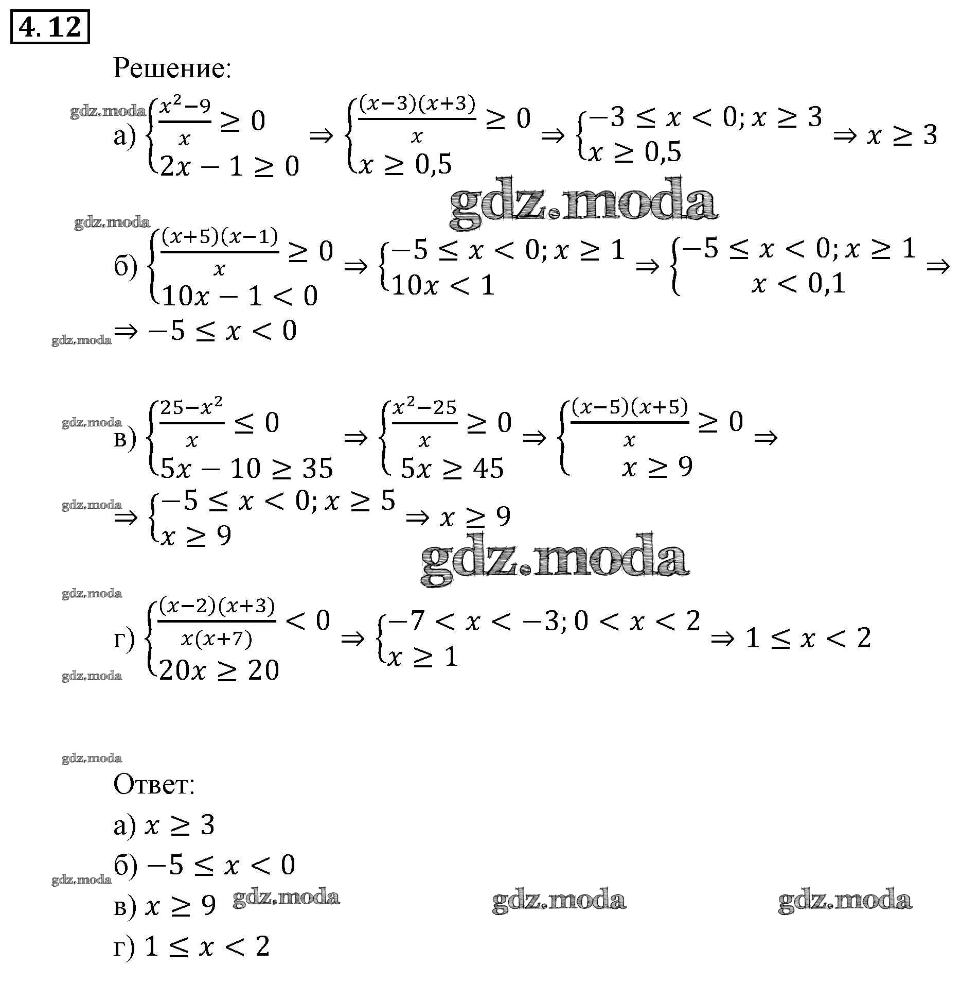 ОТВЕТ на задание № 12 Задачник по Алгебре 9 класс Мордкович