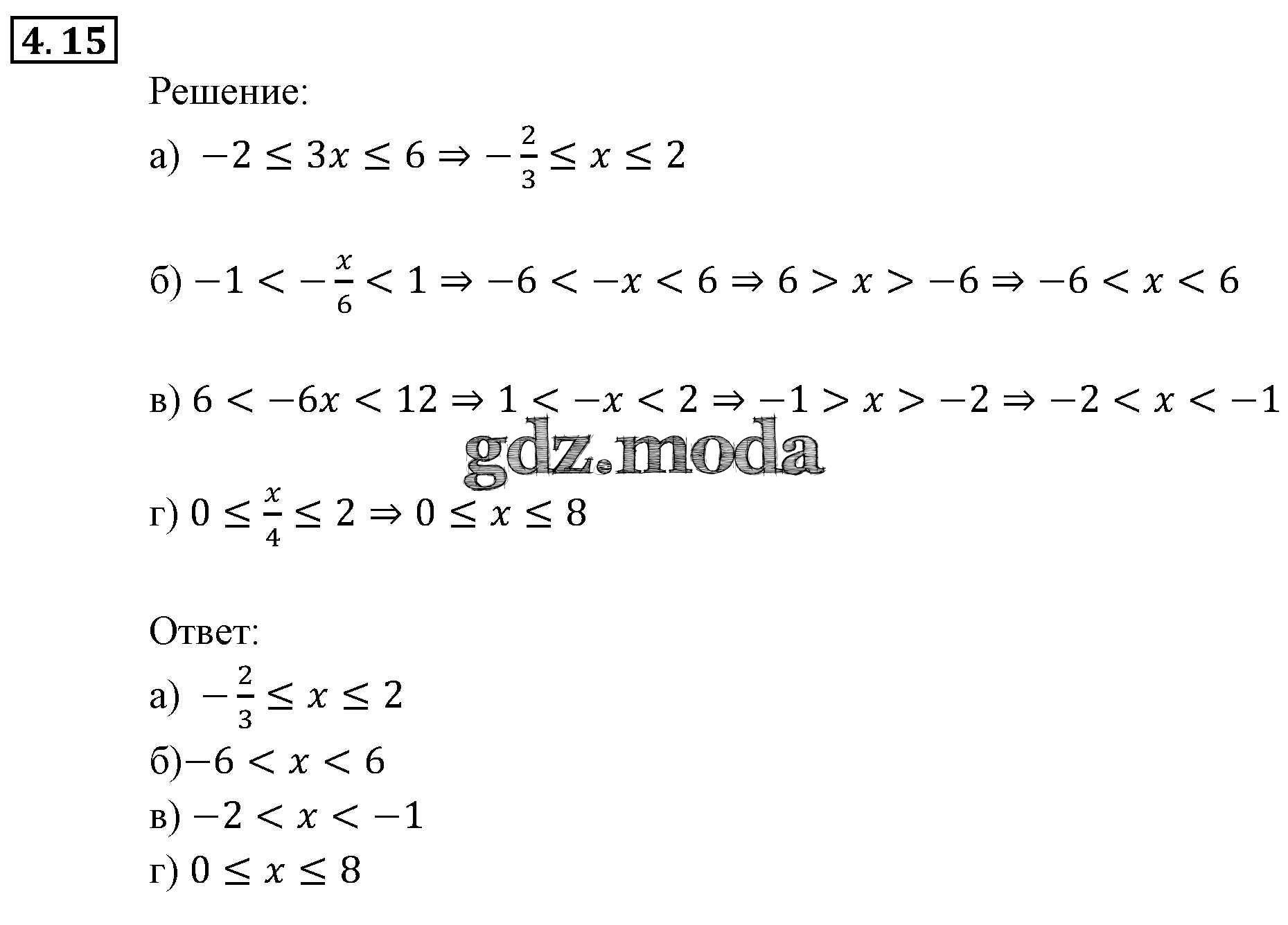 ОТВЕТ на задание № 15 Задачник по Алгебре 9 класс Мордкович