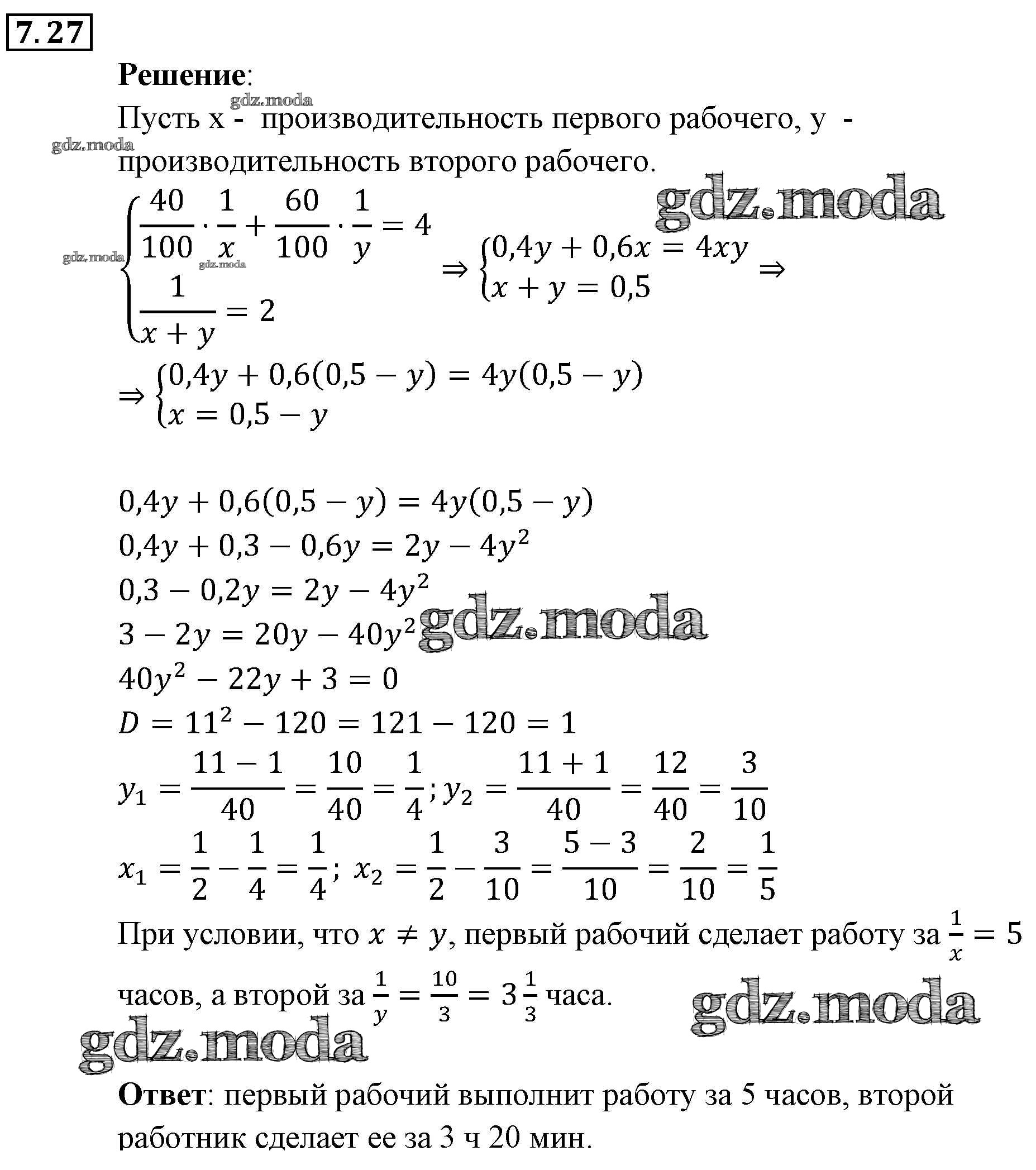 ОТВЕТ на задание № 27 Задачник по Алгебре 9 класс Мордкович
