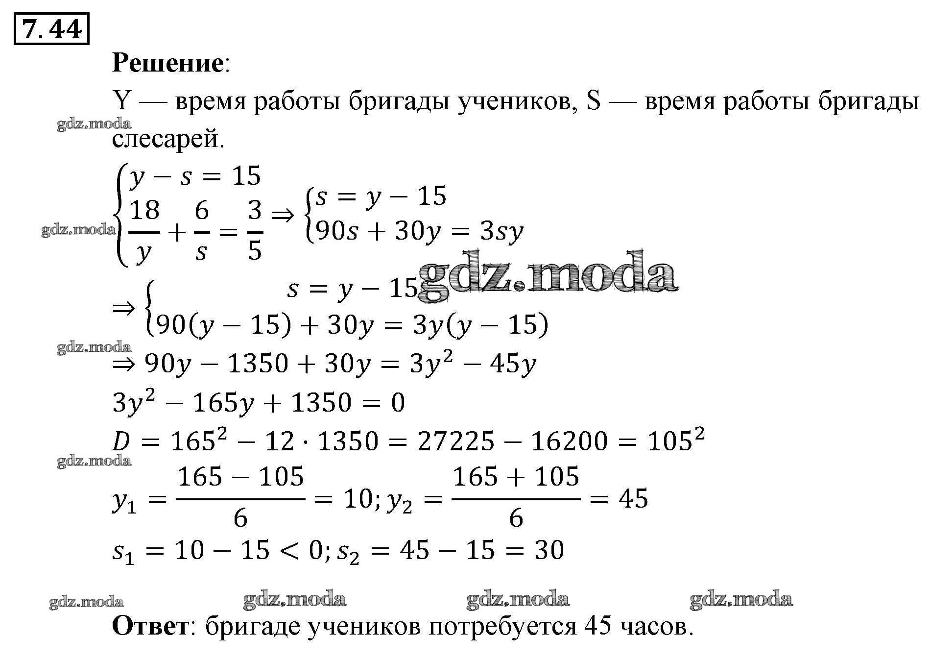 ОТВЕТ на задание № 44 Задачник по Алгебре 9 класс Мордкович