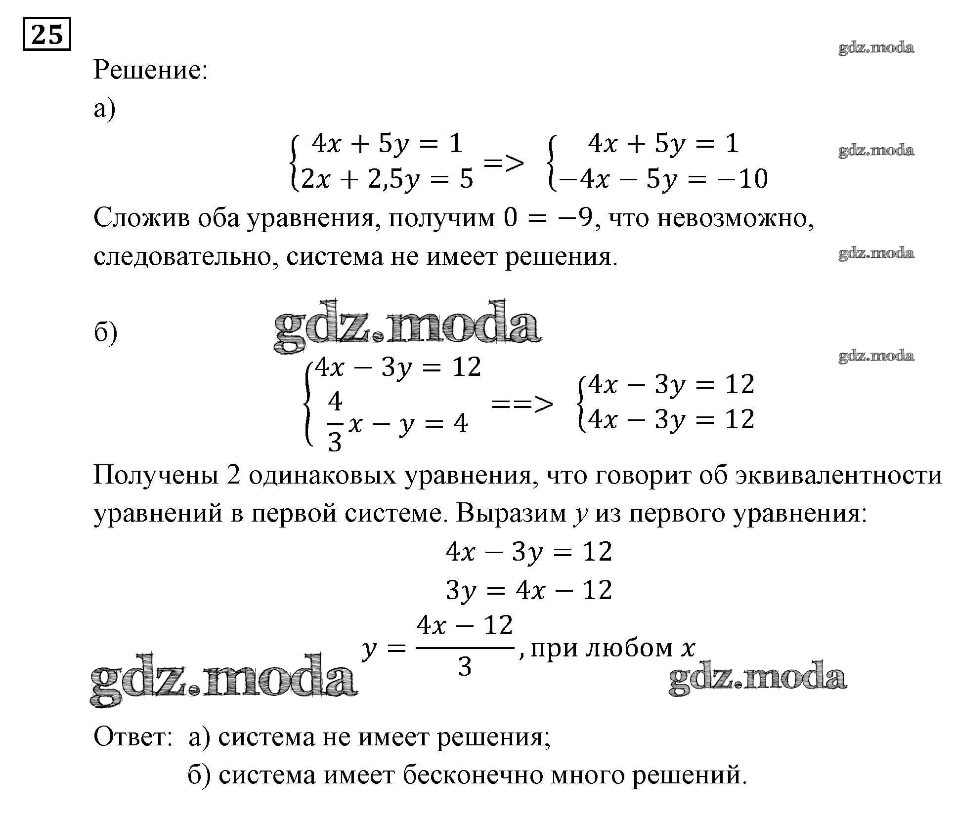 ОТВЕТ на задание № 25 Задачник по Алгебре 9 класс Мордкович