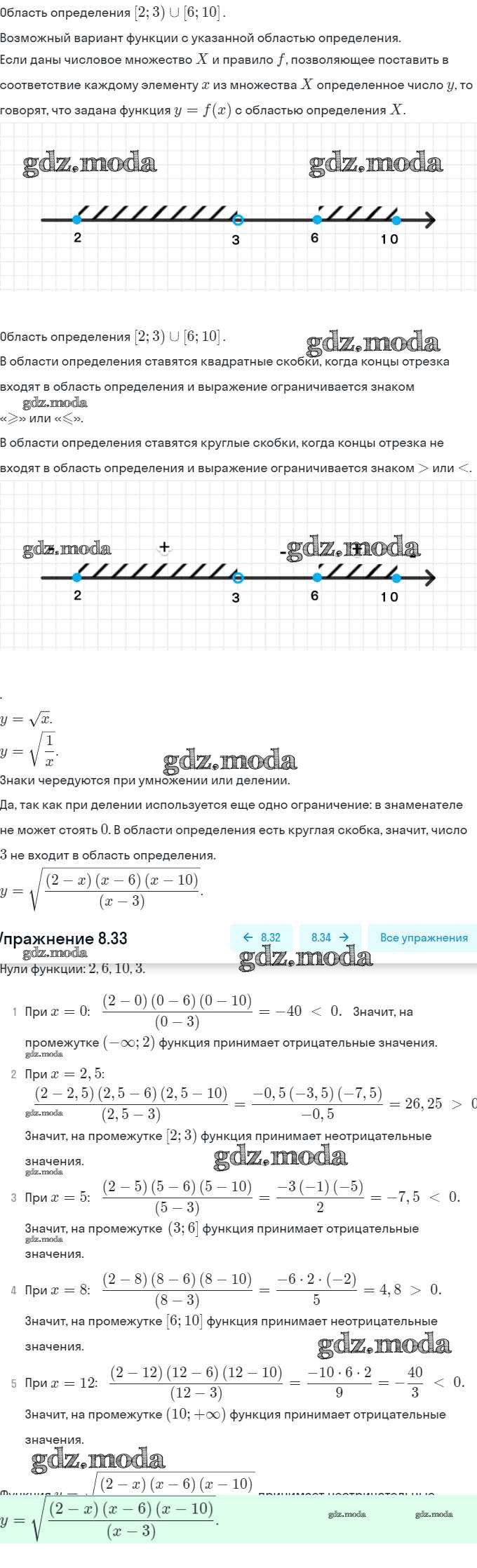 ОТВЕТ на задание № 8.33 Задачник по Алгебре 9 класс Мордкович