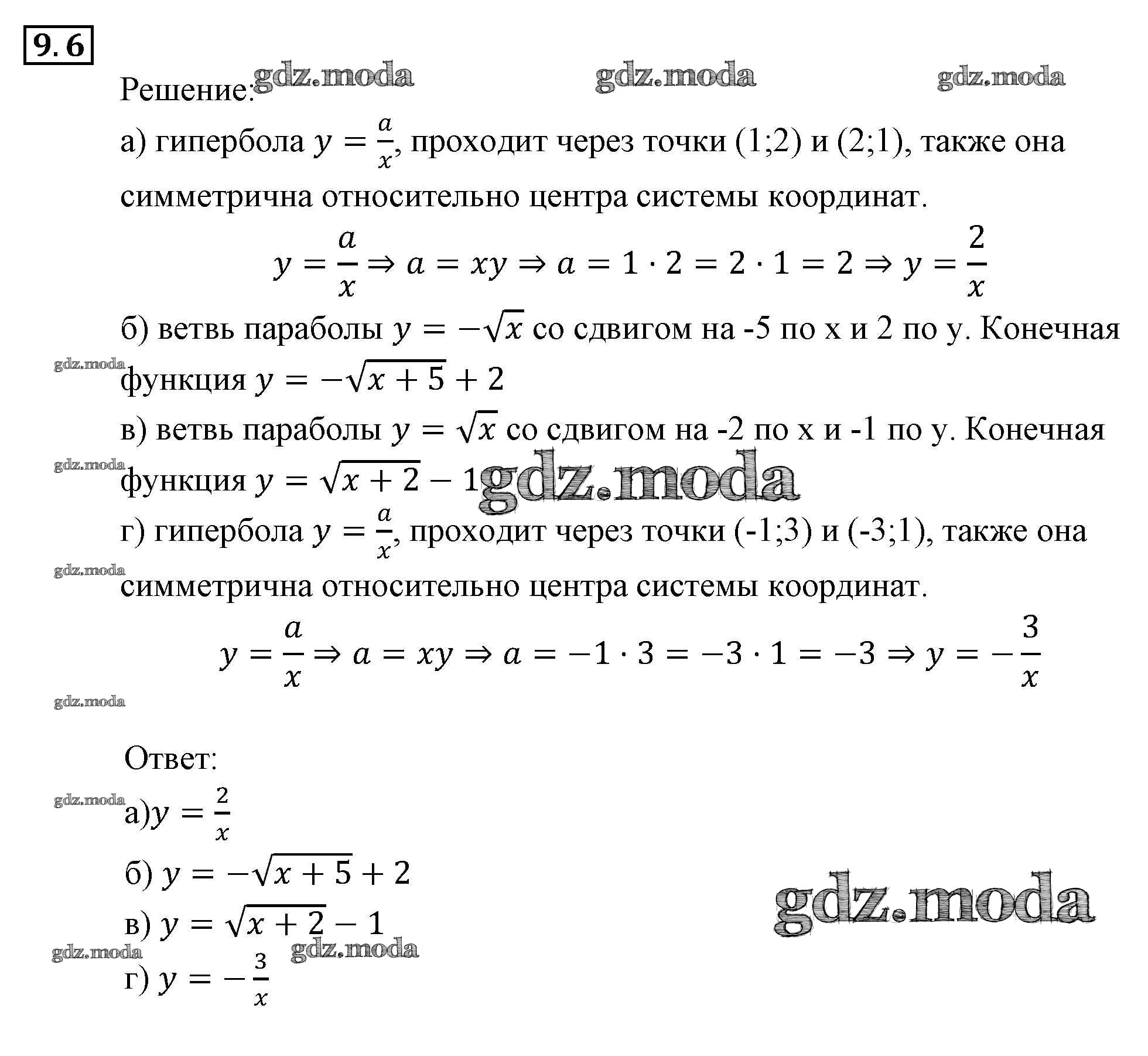 ОТВЕТ на задание № 6 Задачник по Алгебре 9 класс Мордкович
