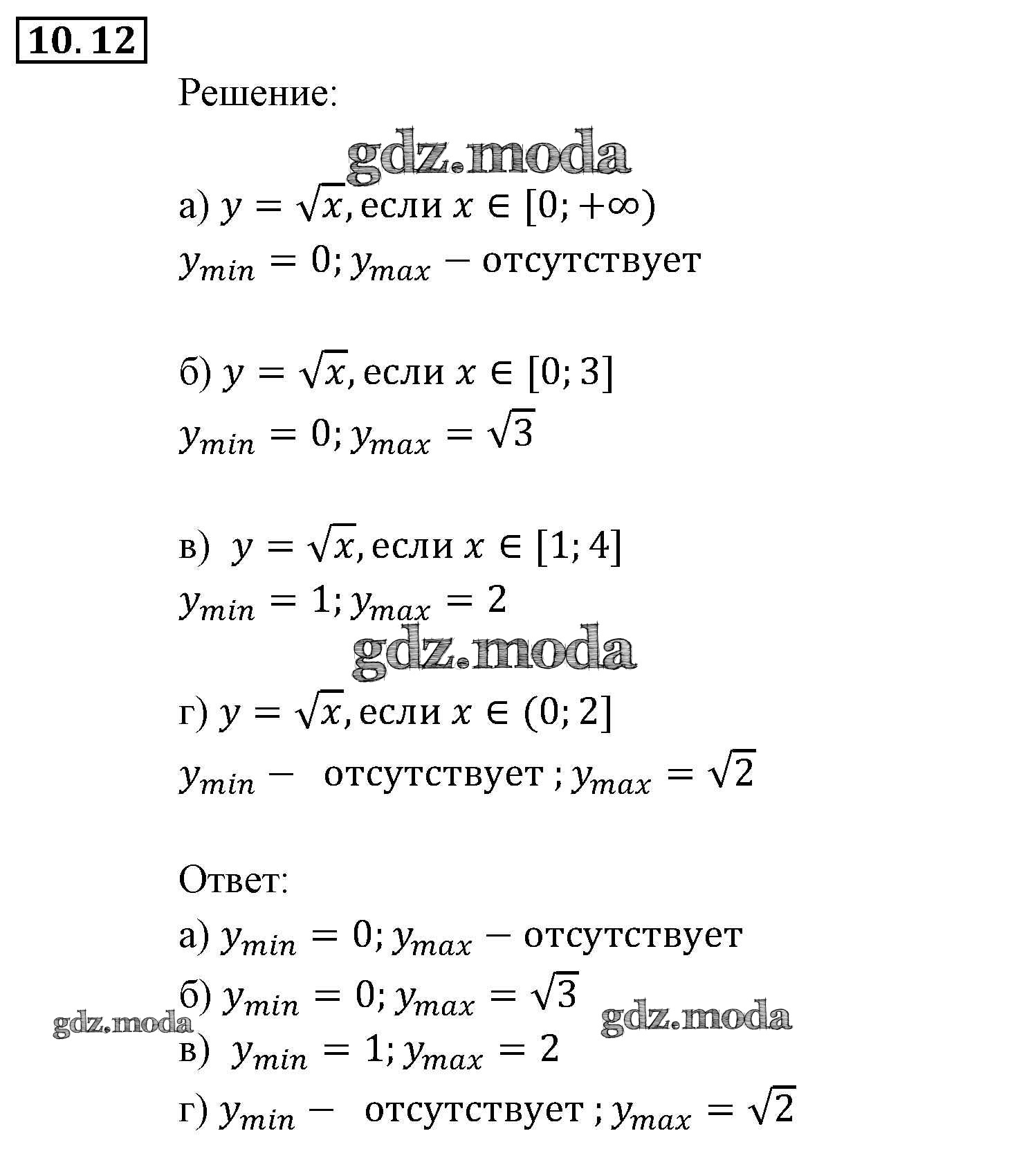 ОТВЕТ на задание № 12 Задачник по Алгебре 9 класс Мордкович