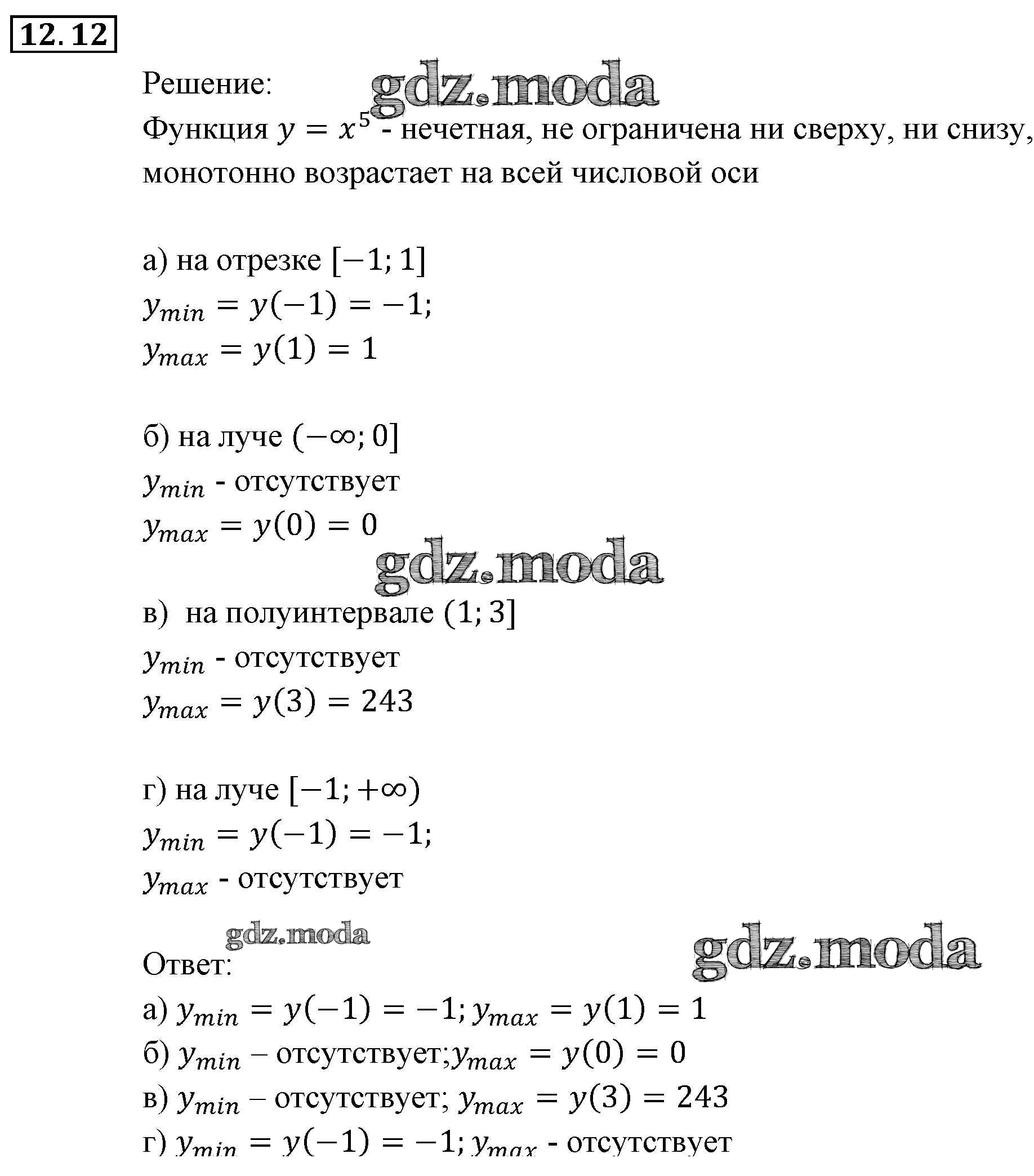 ОТВЕТ на задание № 12 Задачник по Алгебре 9 класс Мордкович
