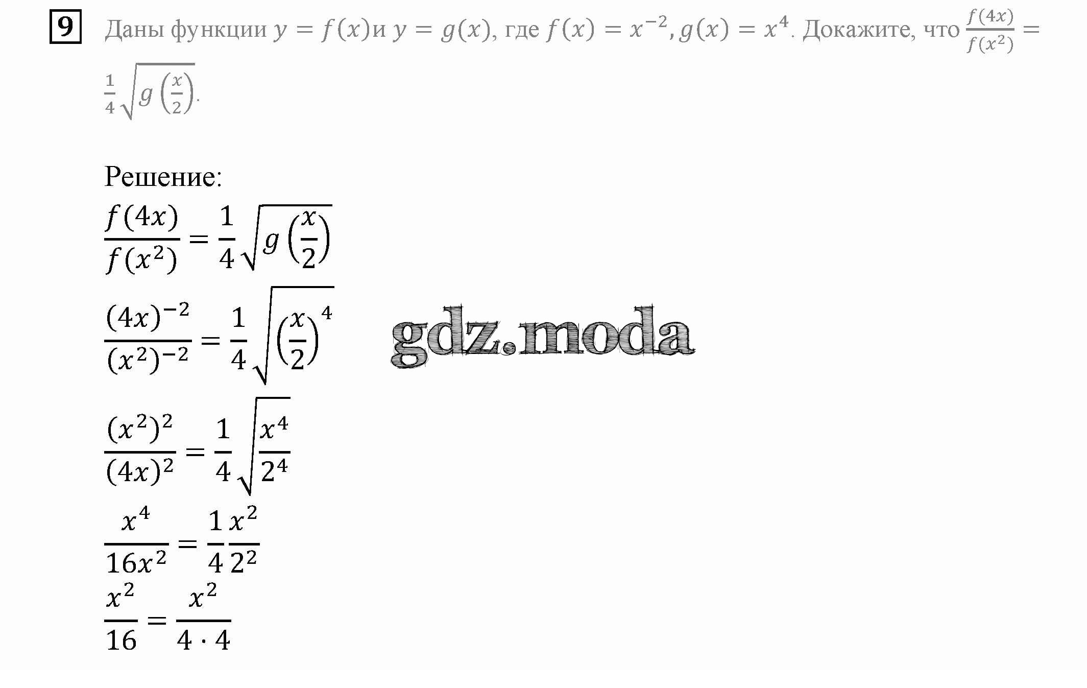 ОТВЕТ на задание № 9 Задачник по Алгебре 9 класс Мордкович