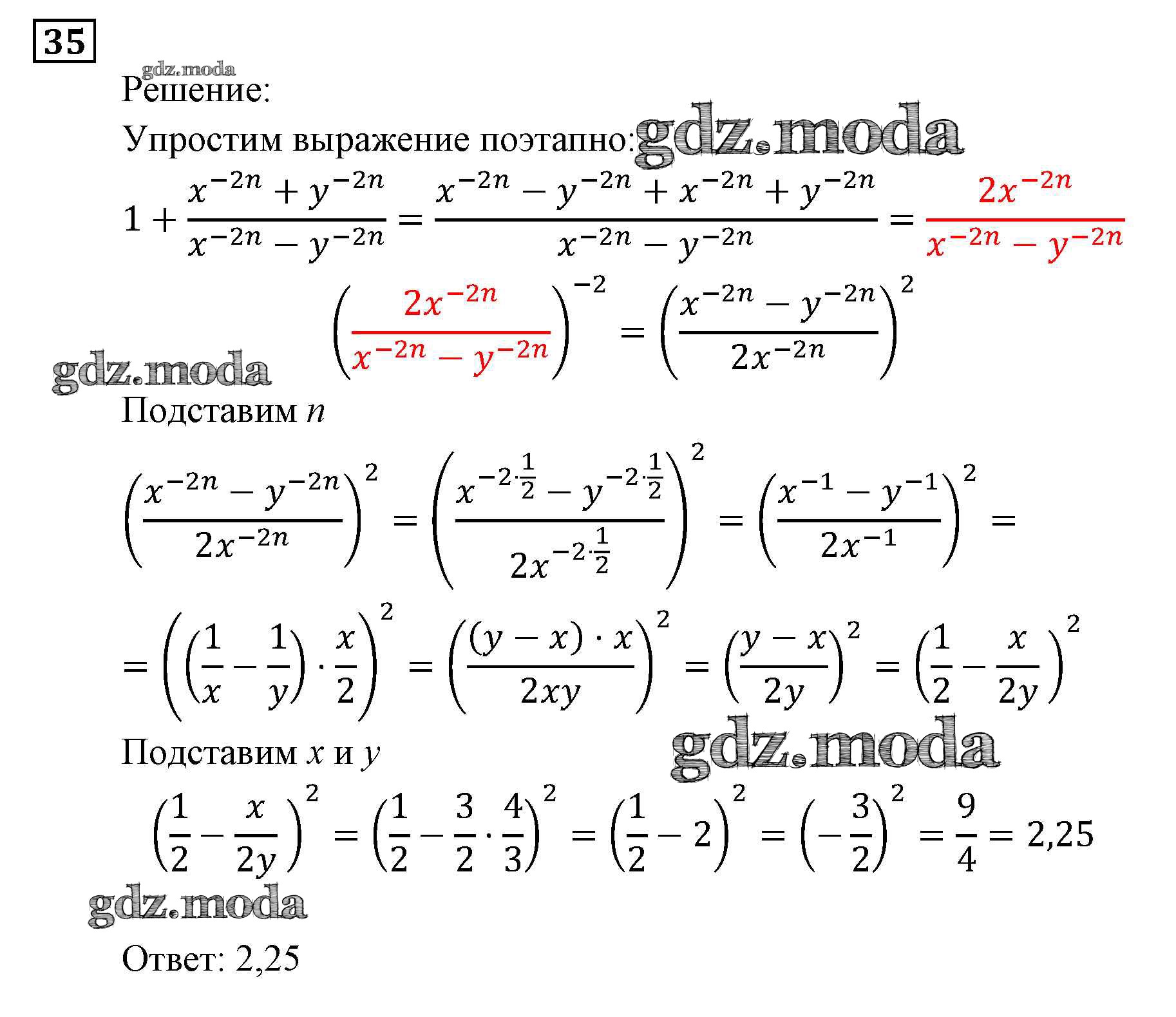 ОТВЕТ на задание № 35 Задачник по Алгебре 9 класс Мордкович