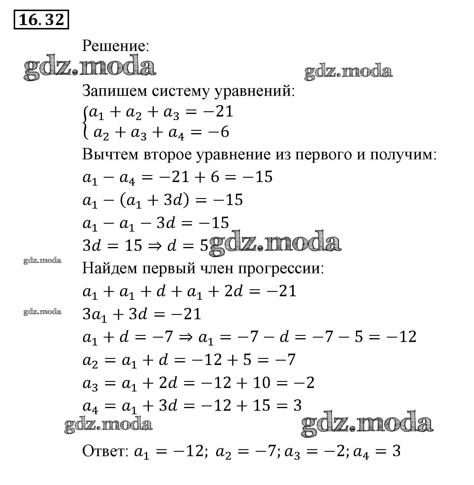 ОТВЕТ на задание № 32 Задачник по Алгебре 9 класс Мордкович