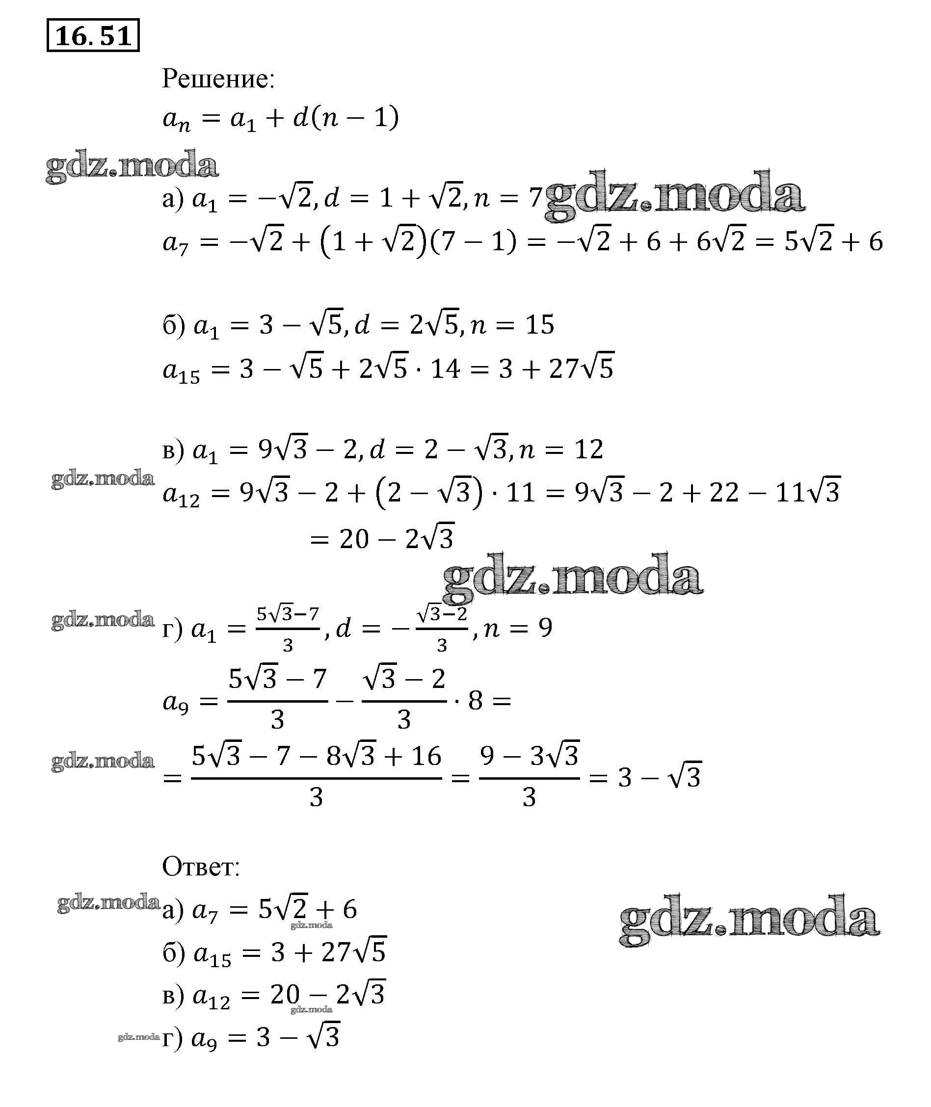 ГДЗ решение к заданию № 51 Алгебра 9 класс Задачник Мордкович А.Г. (часть 2) Мнемозина 2010 Часть 2 ФГОС бесплатно на гдз.мода!