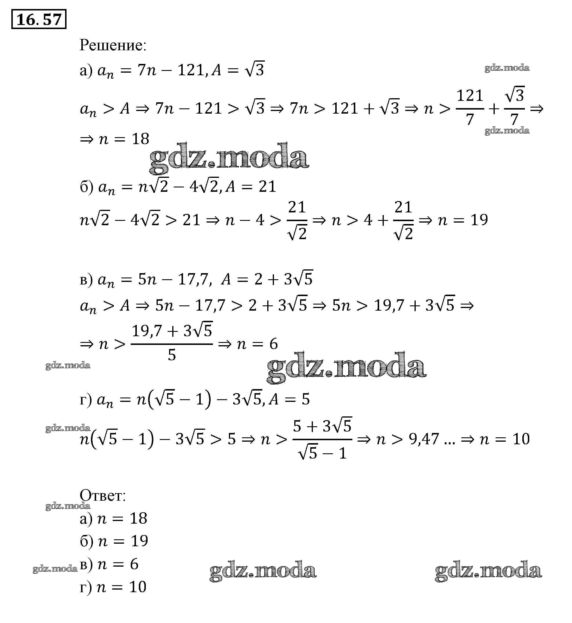 ГДЗ решение к заданию № 57 Алгебра 9 класс Задачник Мордкович А.Г. (часть 2) Мнемозина 2010 Часть 2 ФГОС бесплатно на гдз.мода!