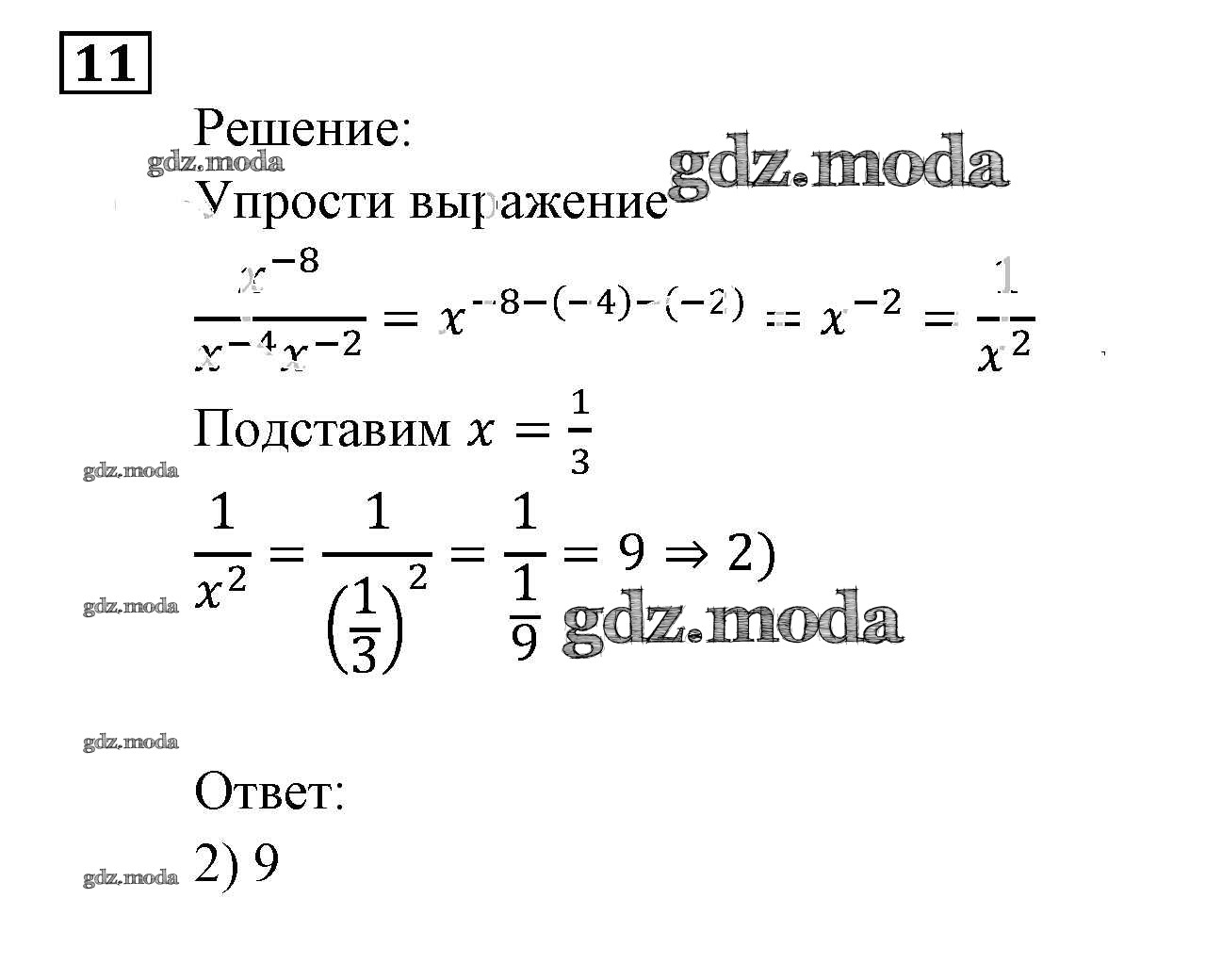 ОТВЕТ на задание № 11 Задачник по Алгебре 9 класс Мордкович