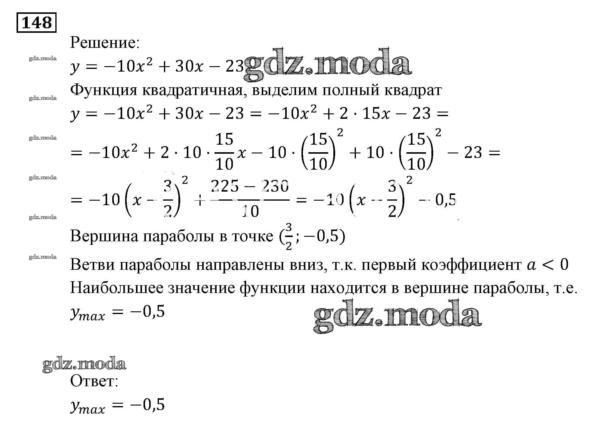 ОТВЕТ на задание № 148 Задачник по Алгебре 9 класс Мордкович