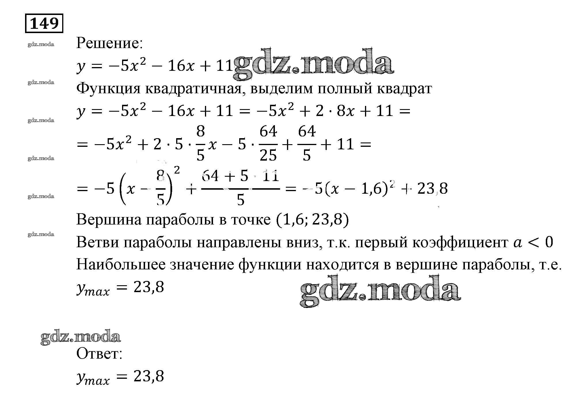 ГДЗ решение к заданию № 149 Алгебра 9 класс Задачник Мордкович А.Г. (часть 2) Мнемозина 2010 Часть 2 ФГОС бесплатно на гдз.мода!