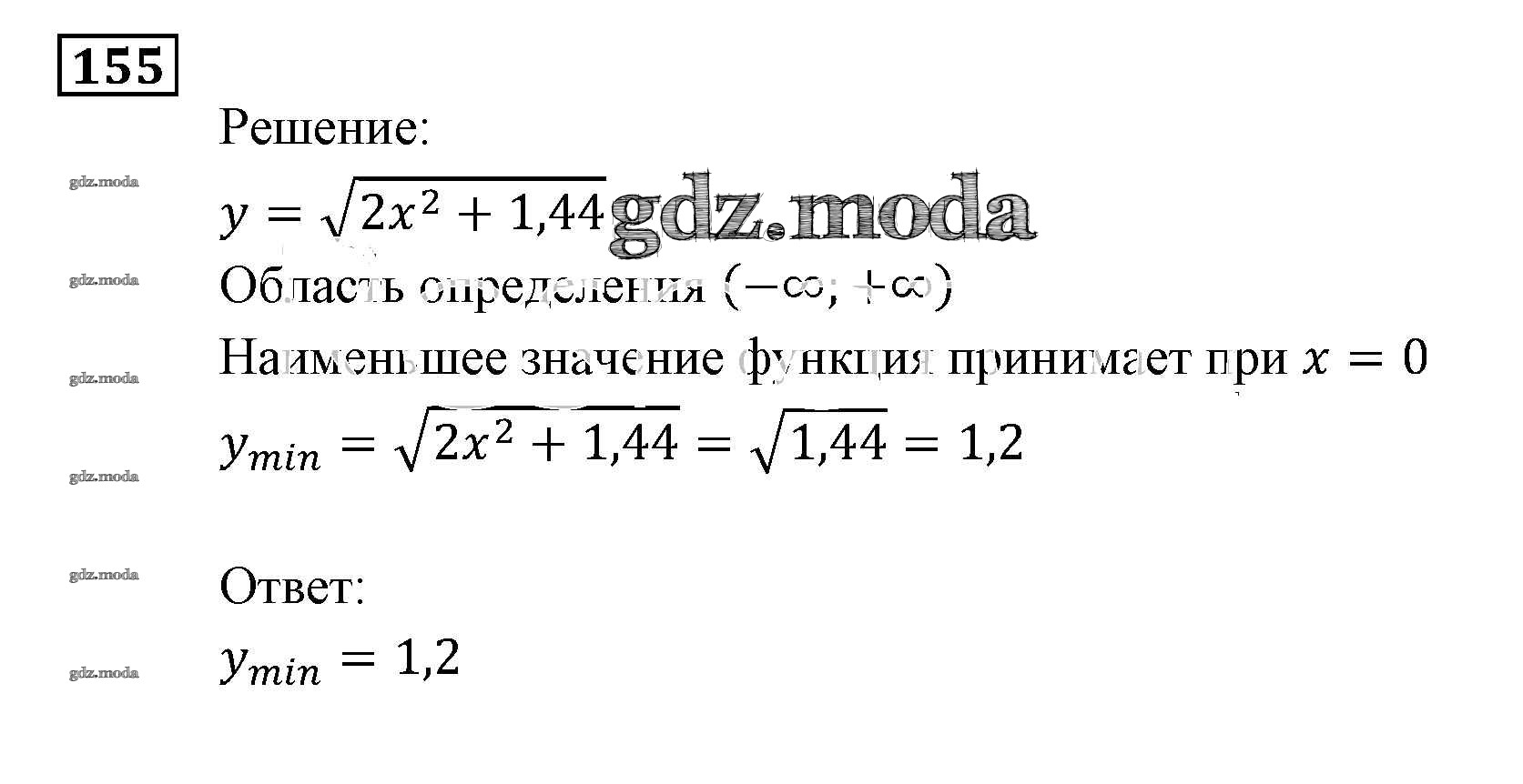 ОТВЕТ на задание № 155 Задачник по Алгебре 9 класс Мордкович