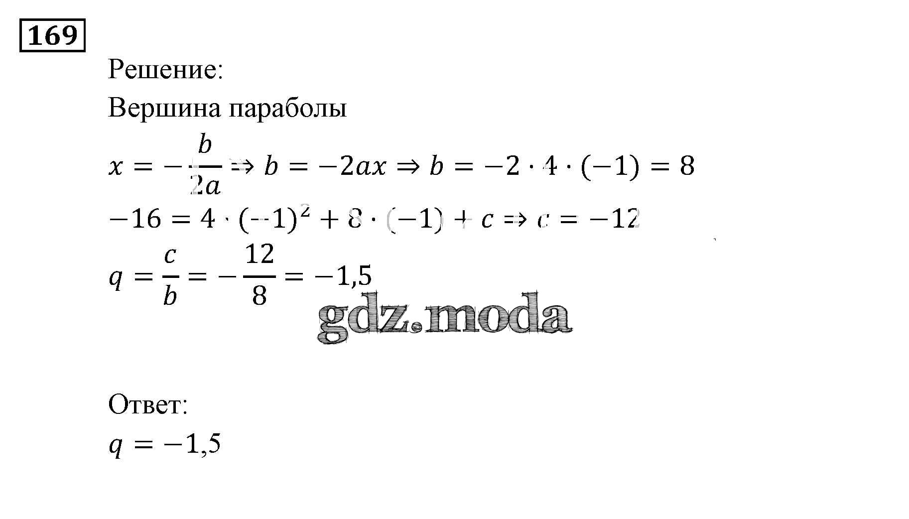 ОТВЕТ на задание № 169 Задачник по Алгебре 9 класс Мордкович