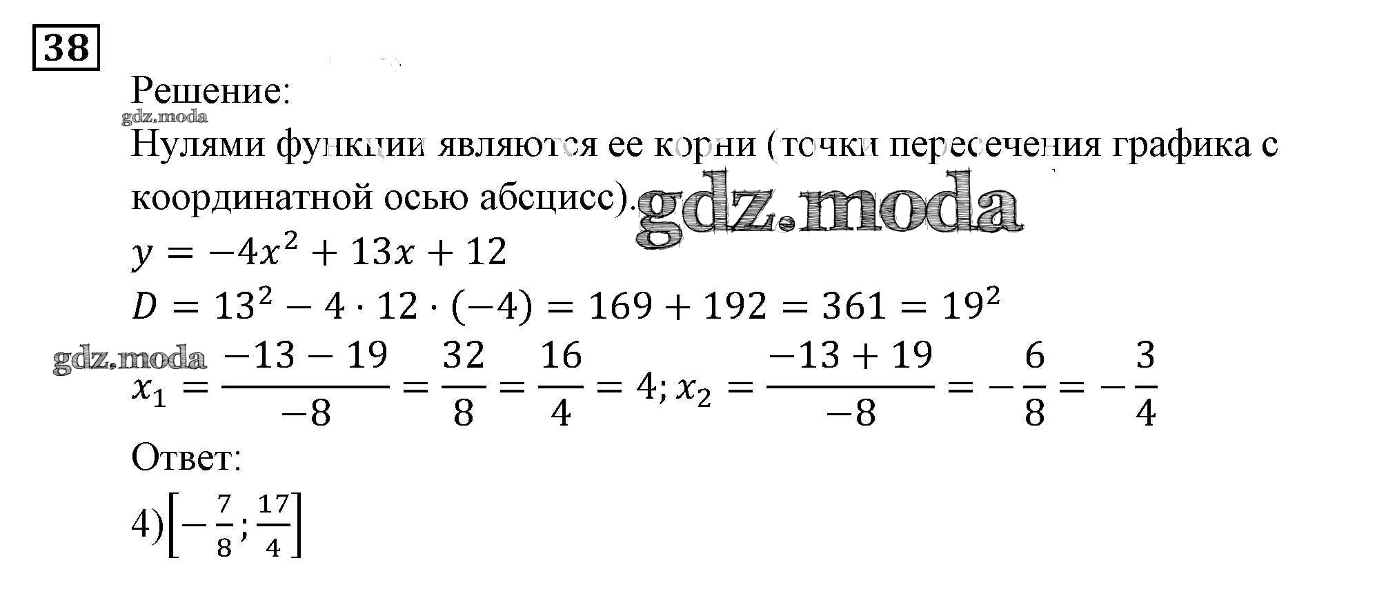 ОТВЕТ на задание № 38 Задачник по Алгебре 9 класс Мордкович