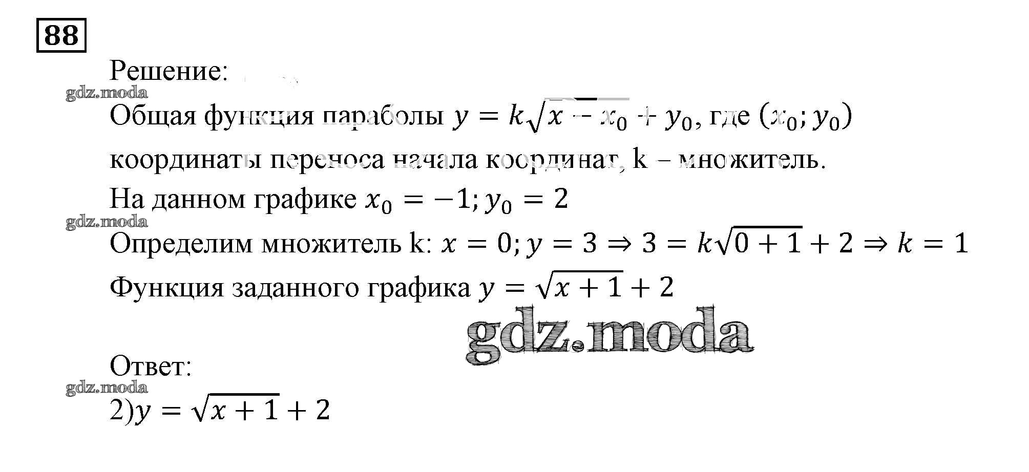 ОТВЕТ на задание № 88 Задачник по Алгебре 9 класс Мордкович